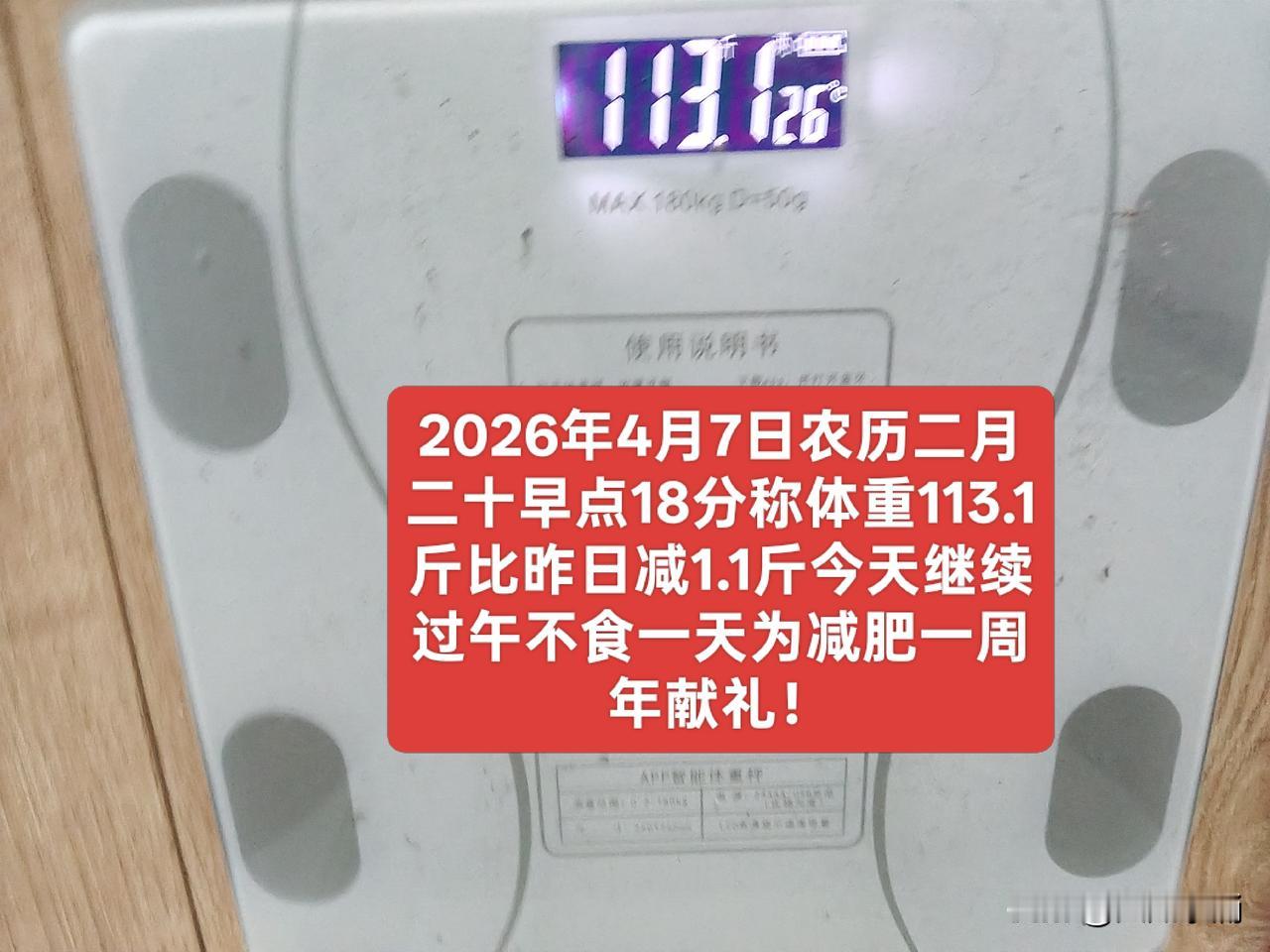 今天是2026年4月7日,农历二月二十日,周二,明天4月8日,即是我减肥减重一周年纪念日,为了明天的贺礼,今天再坚持一天过午不食。