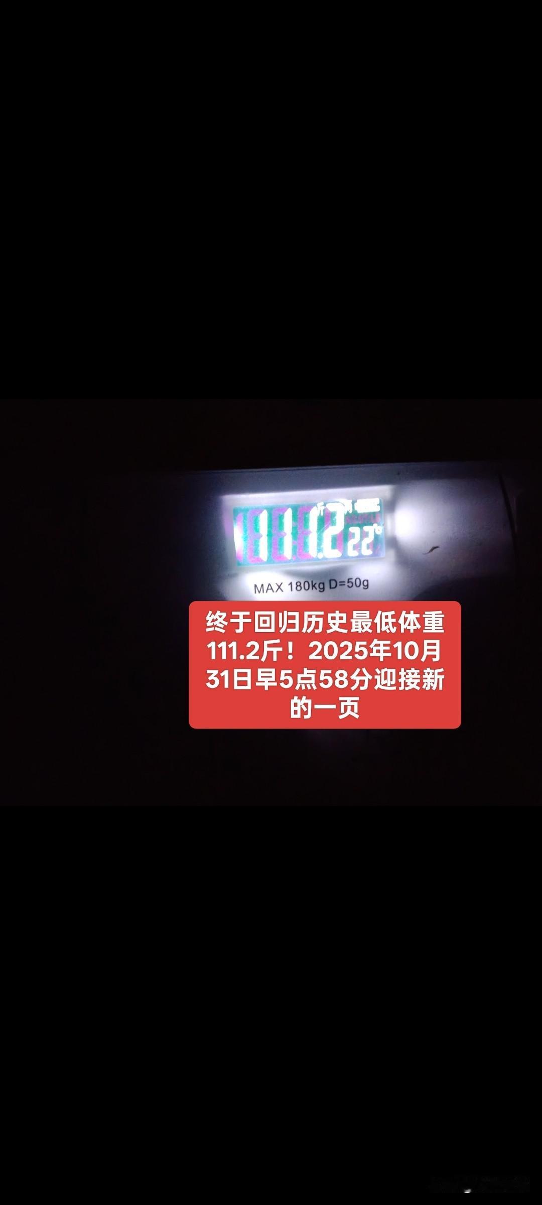 不达目的,决不罢休!!今天是2026年4月9日,是我减肥控重一周年之际,此时此刻,最想看到的是自己的减肥控重最佳成果——112斤——BMl21.34——腰围82厘米——历史最低体重111.2斤。