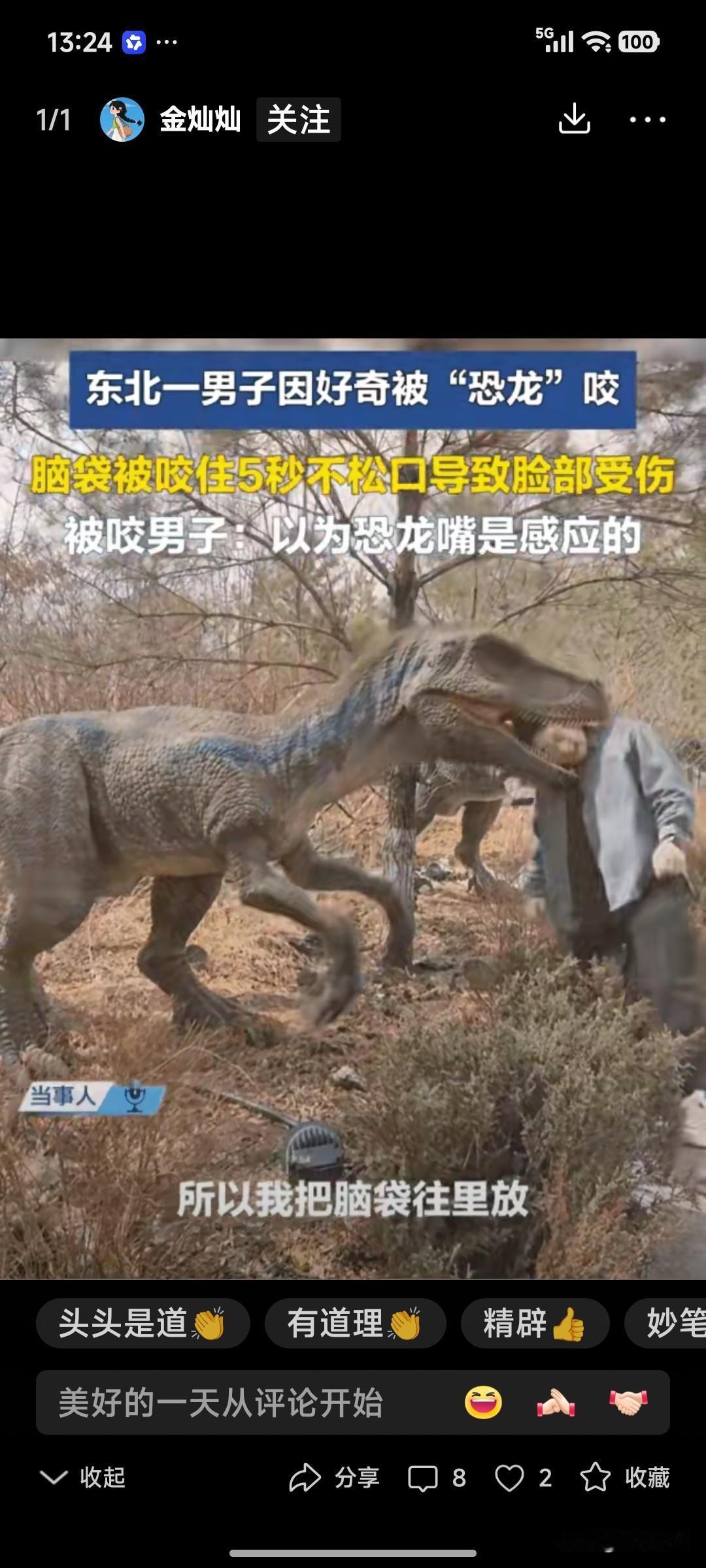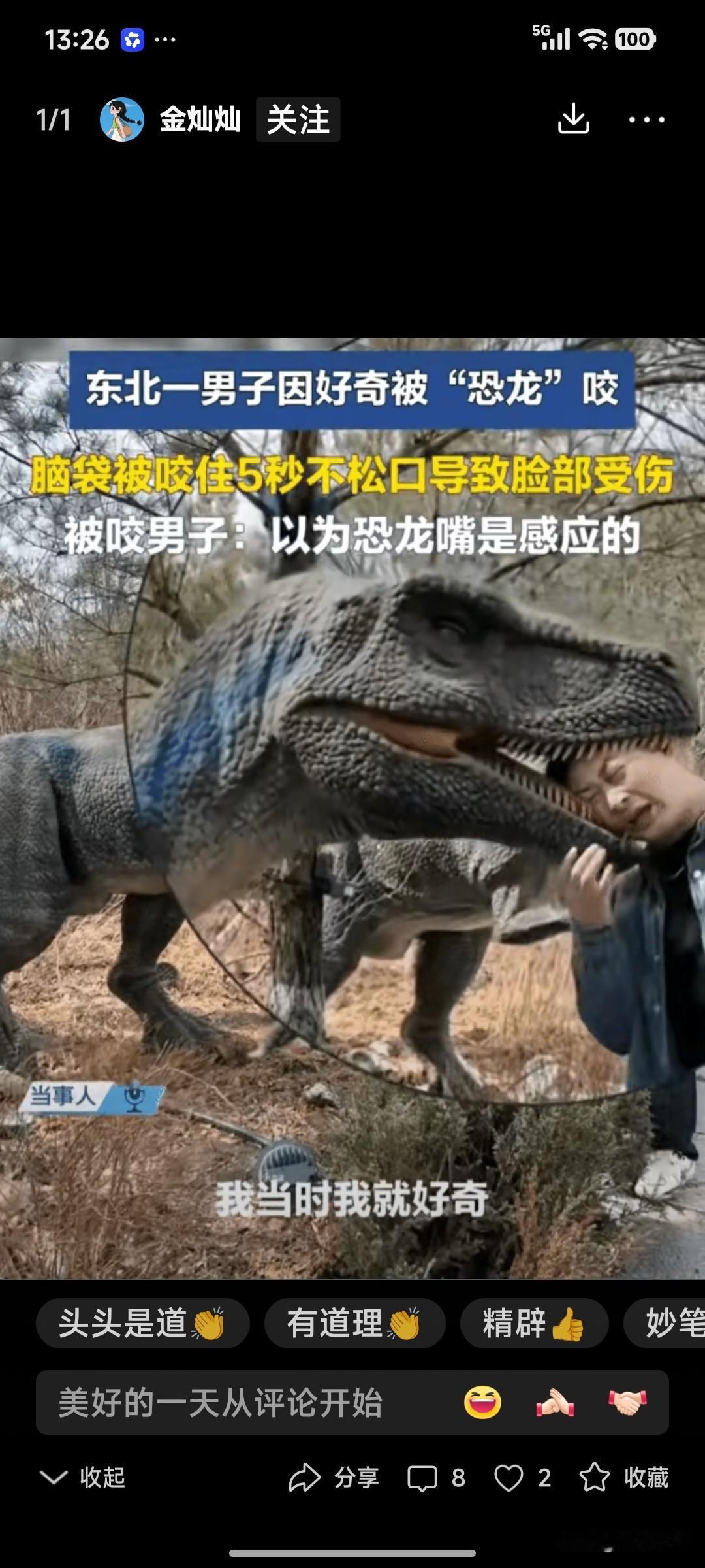 天呐!“仿真电动恐龙”会咬人—— 有人报道说,东北一男子被“仿真电动恐龙”咬伤