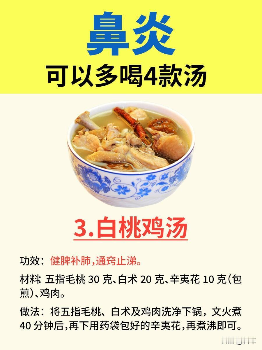 鼻炎犯起来鼻子堵、流清涕,连呼吸都费劲,除了日常护理,这4款汤饮能帮你温和调理,从根源补养肺脾,缓解不适。