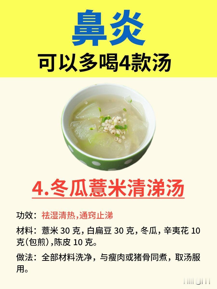 鼻炎调理不是靠猛药,而是从脾胃和肺慢慢养,这4款汤温和又好喝,根据自己的体质选对,长期喝就能让鼻子更舒服,少受鼻炎折磨。