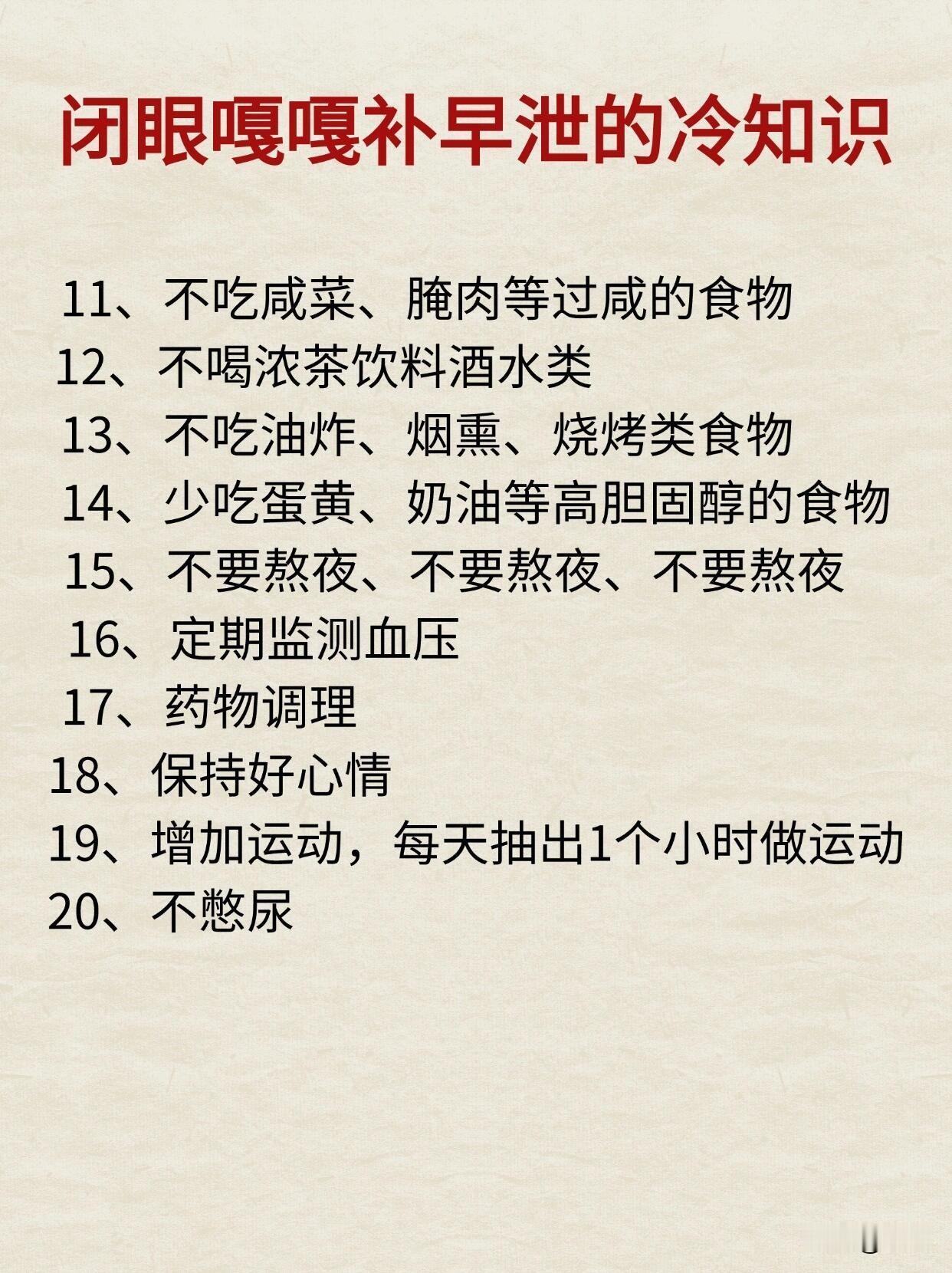 - 不憋尿、不抽烟,定期监测血压,这些细节能保护肾脏和心血管,避免长期损伤。