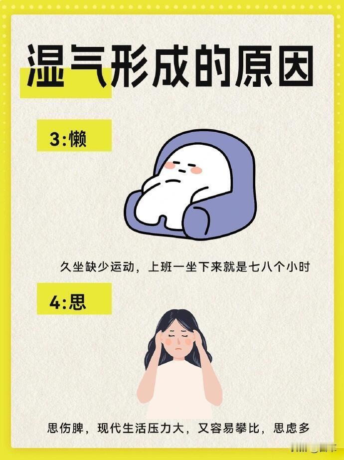 3. 懒:久坐不动,气血循环差,水湿代谢变慢,全堆在身体里。