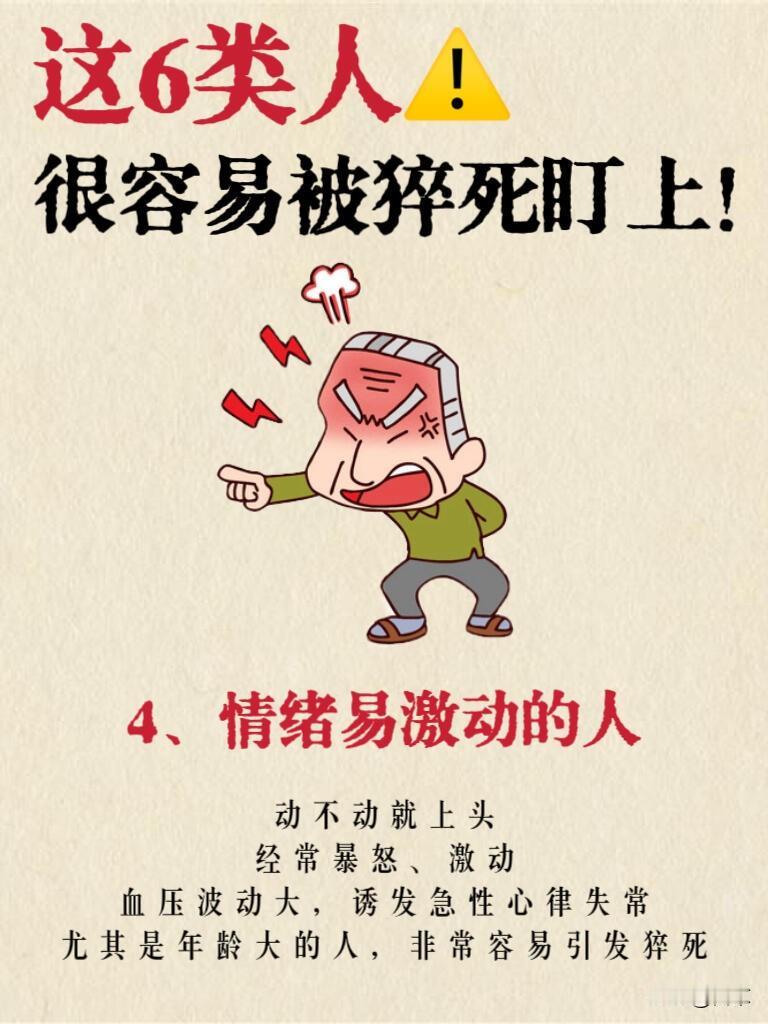 经常暴怒、情绪上头,会让血压剧烈波动,诱发急性心律失常。尤其是中老年人,情绪激动时极易引发心脑血管意外,增加猝死风险。