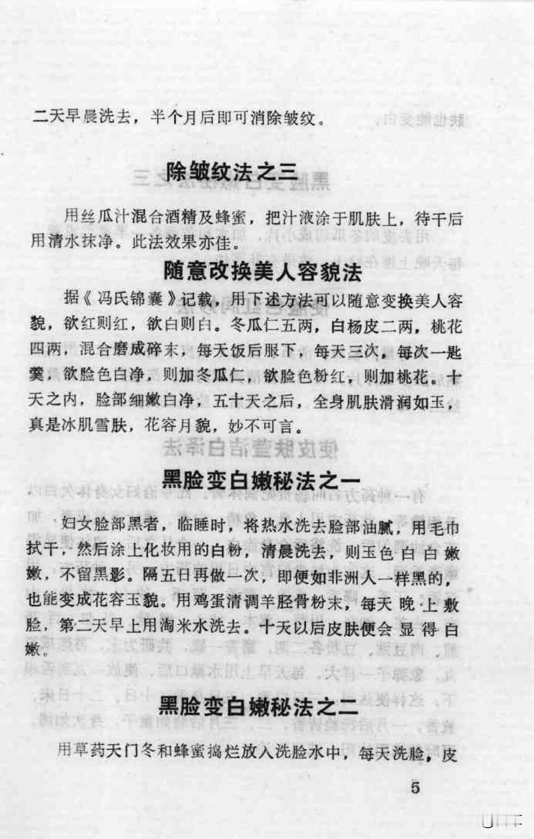 - 改变容貌肤色:冬瓜仁、白杨皮、桃花磨粉饭后服用,想变白就多加冬瓜仁,想红润就多加桃花,五十天就能让全身肌肤滑润如玉。