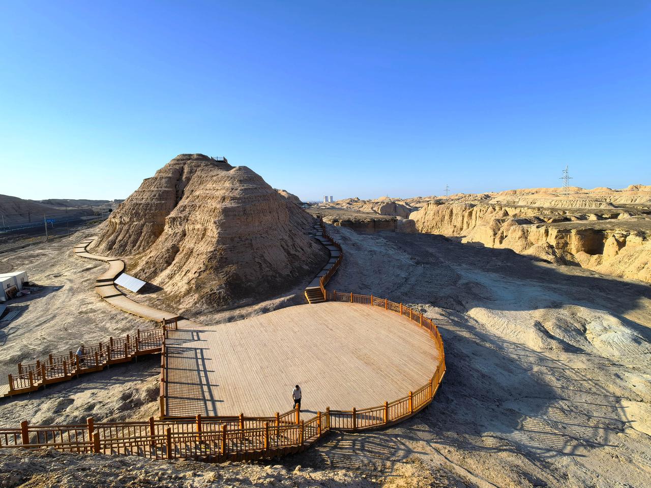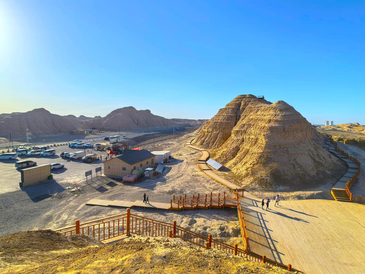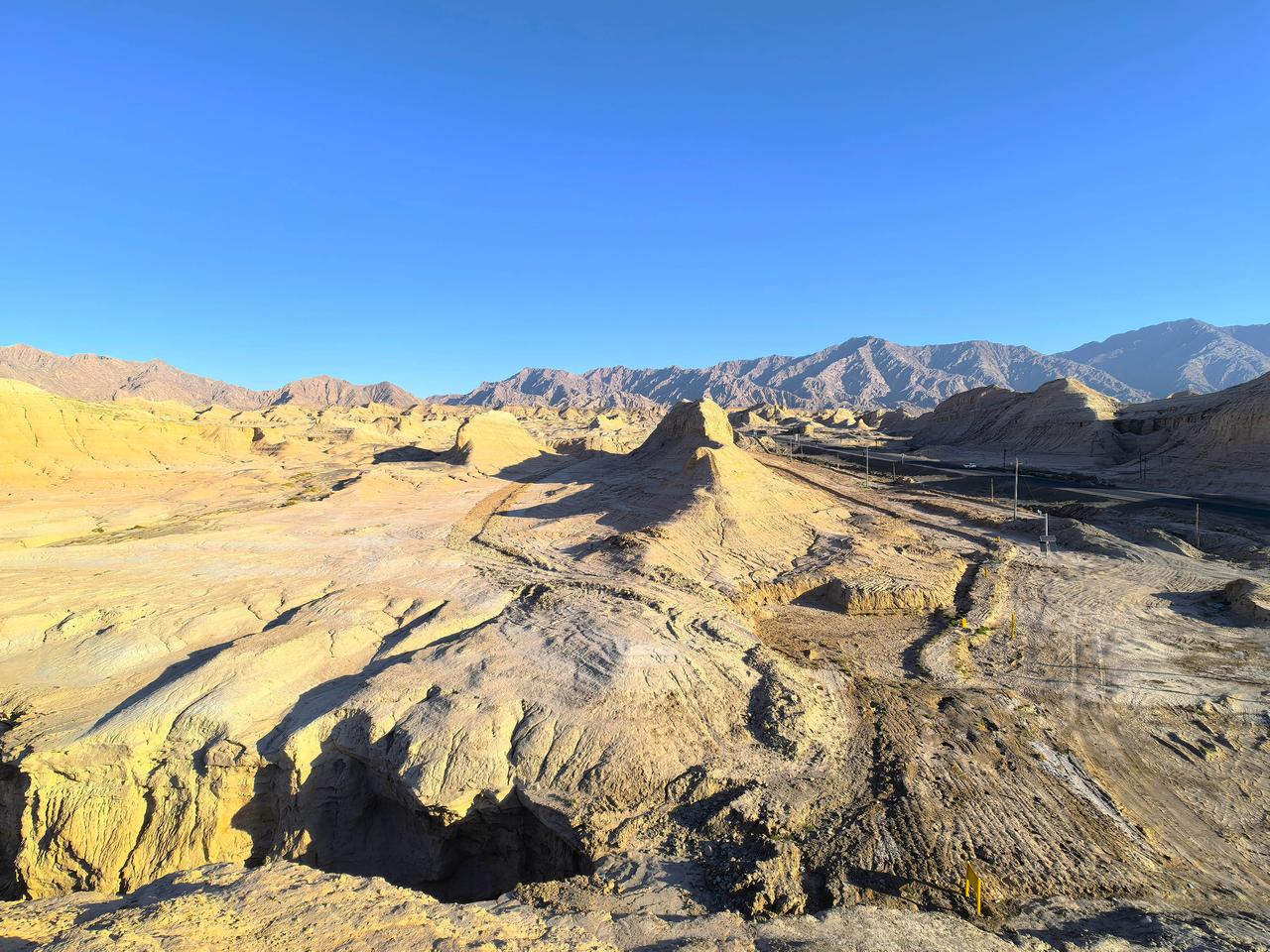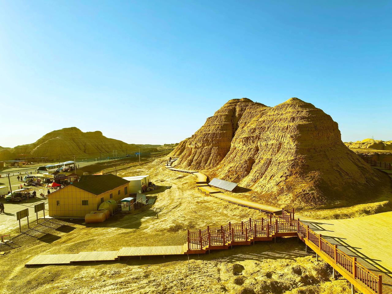 独库公路的终点在库车市,并在终点处开辟了“金字塔自然旅游区”。旅游区属于雅丹地貌,经过长期风蚀呈现出“金字塔”形态,确是大自然的鬼斧神工,当地人称其为“库车金字塔”。