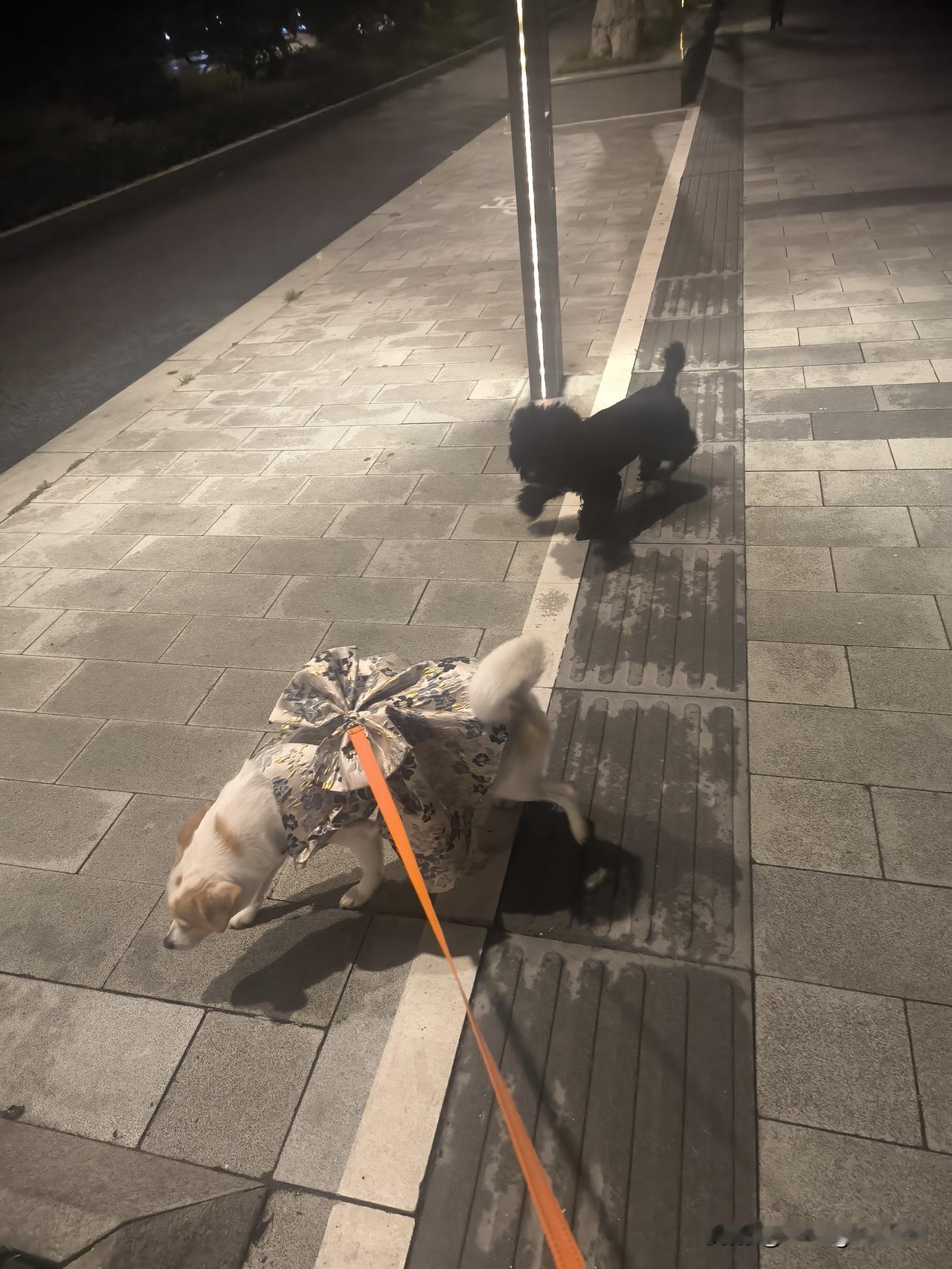 昨晚六点多,我带着“丢丢”去老岳父家打麻将。途中路过一家烟酒店,店门口有只黑色的泰迪犬,看到身着新衣的丢丢后,便主动上前打招呼。许是泰迪身上有些脏,丢丢不愿与它玩耍,可泰迪却纠缠不休,怎么赶都赶不走,一路跟着我们。这段路大概要走八分钟,还得经过三个红绿灯。每次等红绿灯时,我都劝泰迪回去,可它充耳不闻,依旧紧紧跟着。我们上电梯后,它被挡在了楼梯门外,无奈之下,只好折返离开。