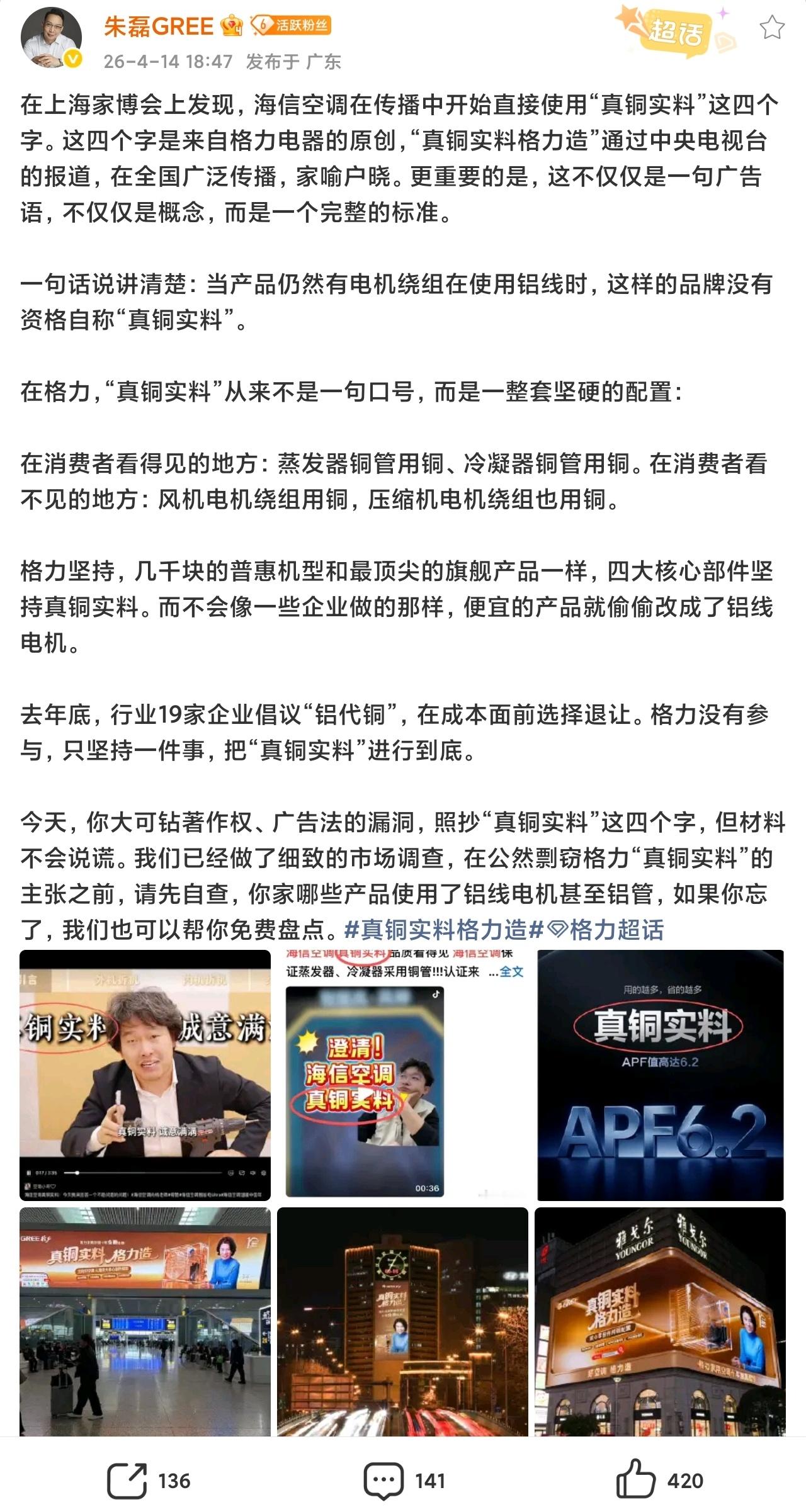 海信高管回应格力喊话真铜实料,这个词只能格力用呀?一边说没有参与,一边被证据糊脸