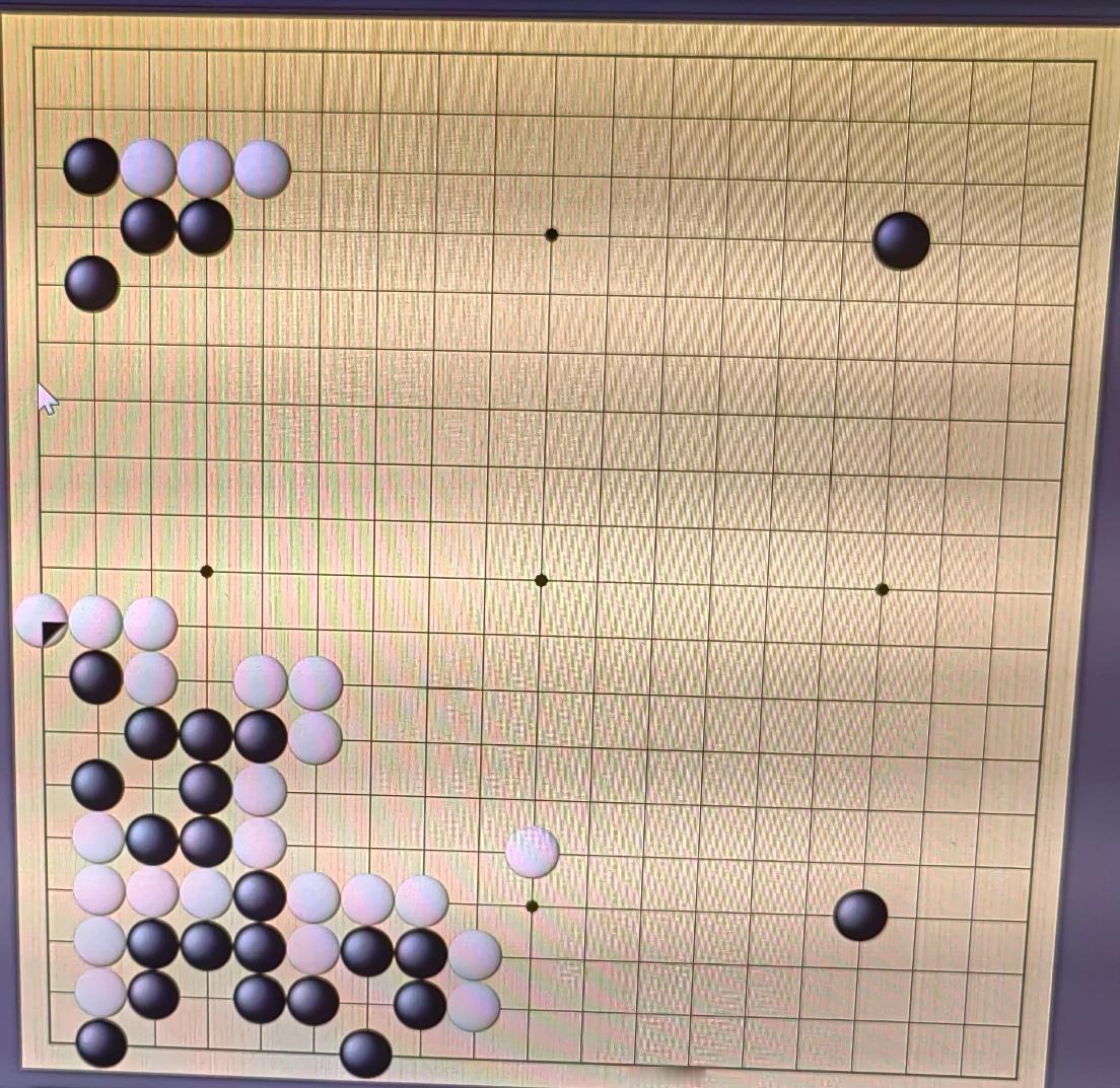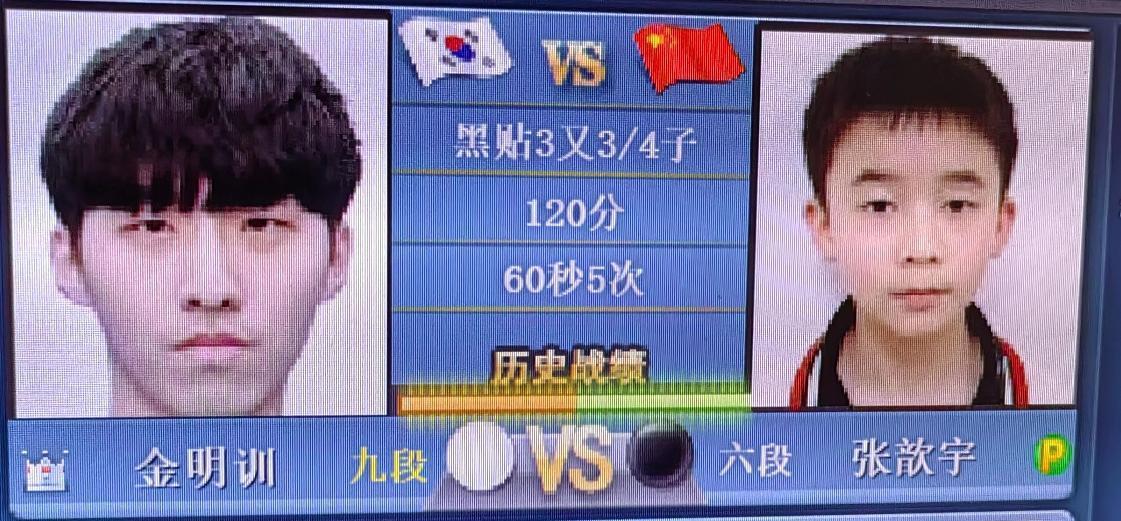 张歆宇执黑先行;金明训执白棋.目前行至第24手,白棋稍稍领先。