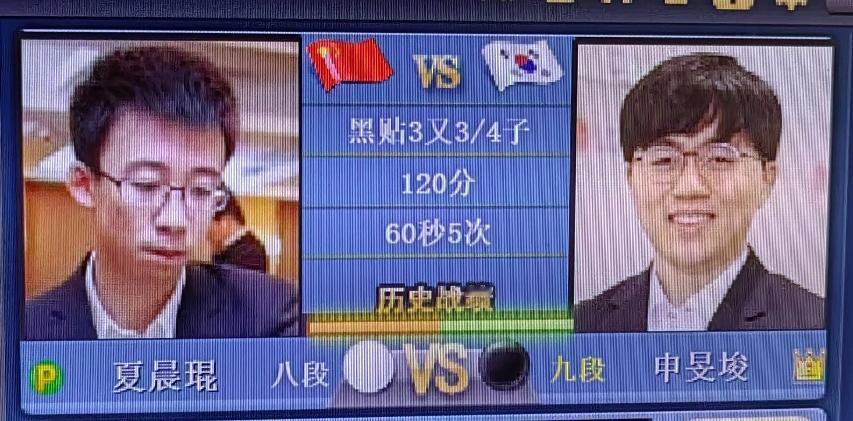夏晨琨执白棋,申旻埈执黑先行,目前行至第37手白棋稍稍领先胜率。