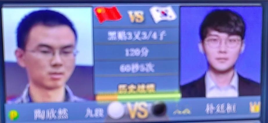 陶欣然执白棋;朴廷桓执黑先行,目前行至52手,均势。