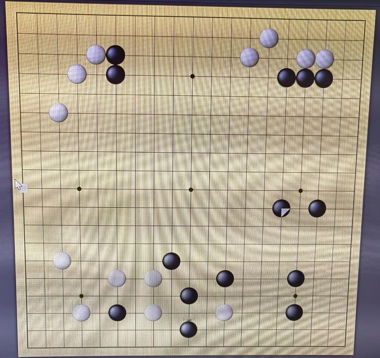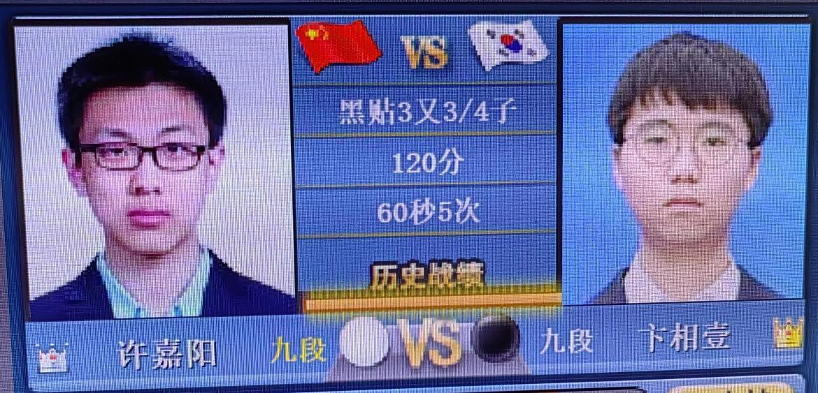 许嘉阳的白棋;卞相壹的黑棋行至25手。均势。
