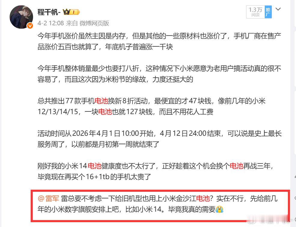 人形许愿机雷军,启动! 小米上线电池升级服务