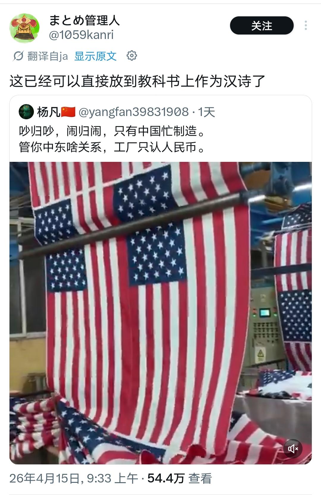 特普,放一艘油轮出来,不然没国旗和帽子原料了。