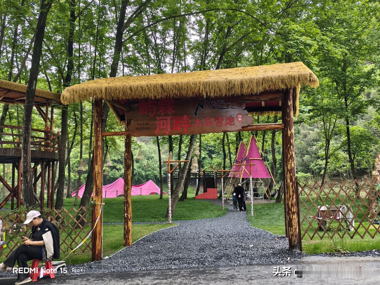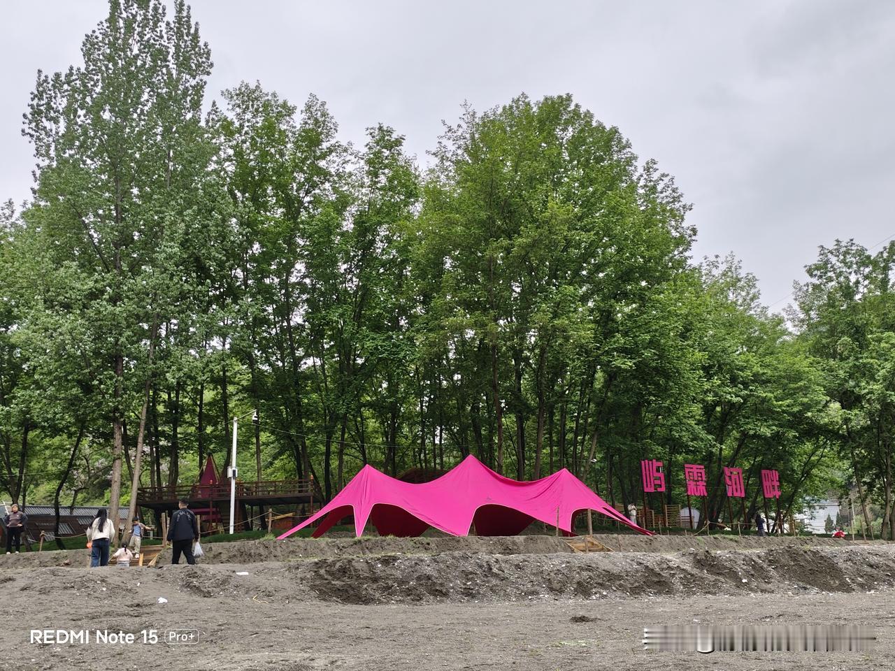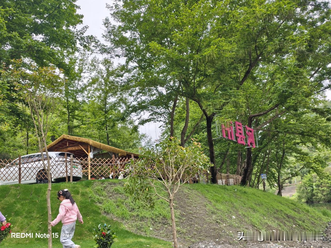 这就是县河新晋网红打卡地。东方,靠近河边是露营基地,露营帐篷前是停车场。