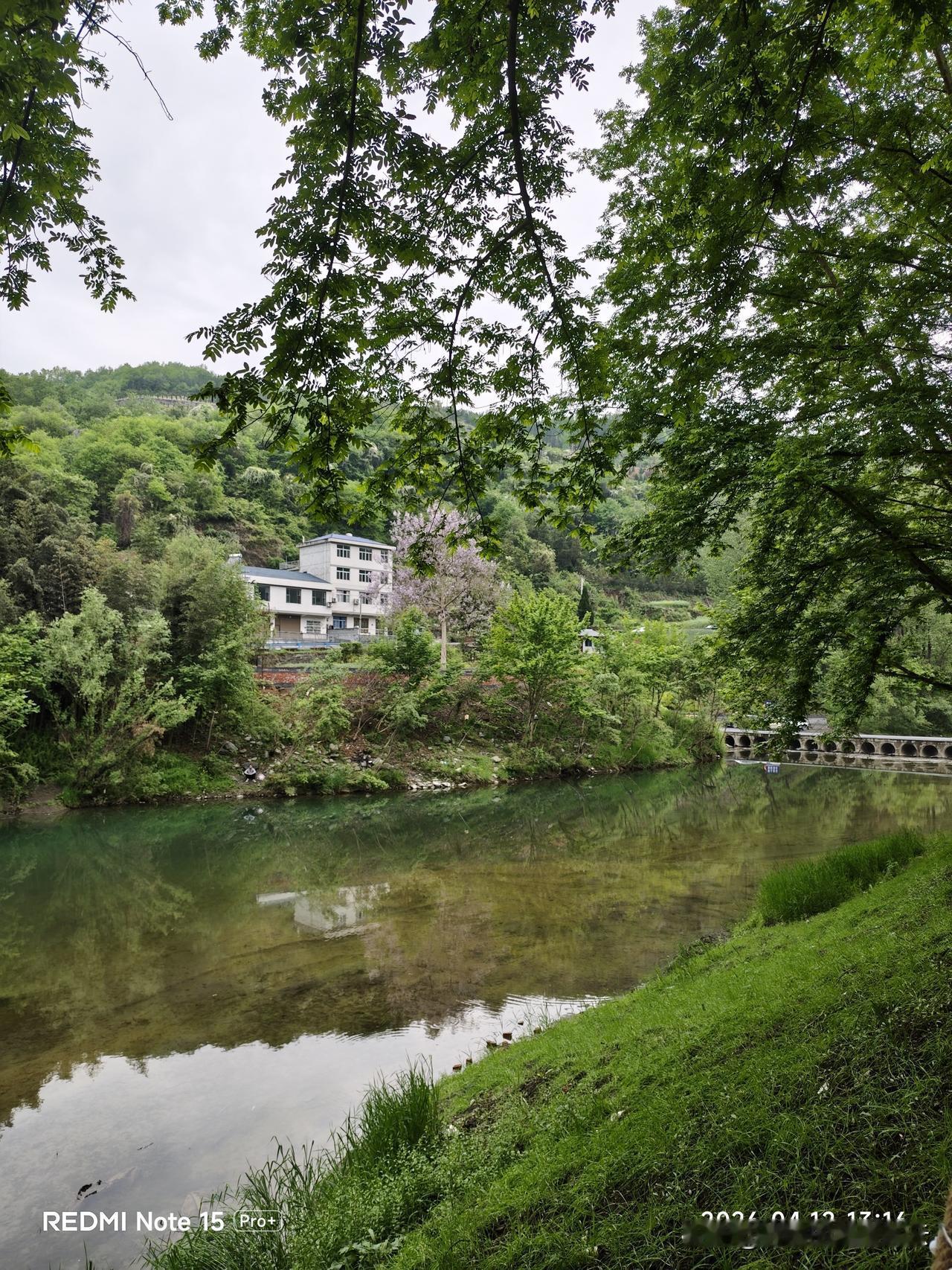 春天的田园风光真美。住在河北岸的人家,小洋楼掩映在绿树丛中,就像身处世外桃源。