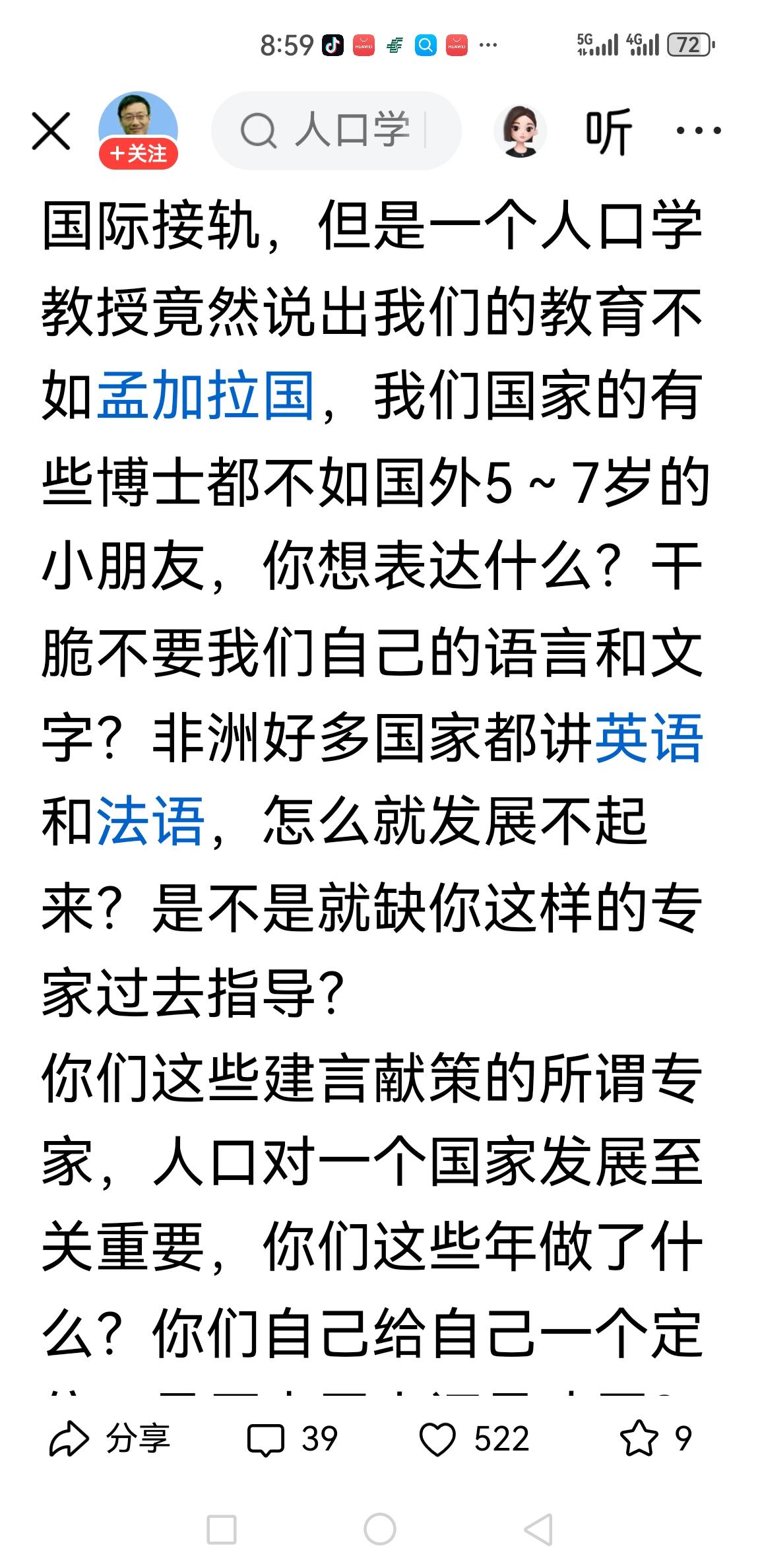 那个人口专家说咱中国的博士不如国外5至7岁的小朋友?中国的语言文字必须废除么?人口学非要与国际接轨么?