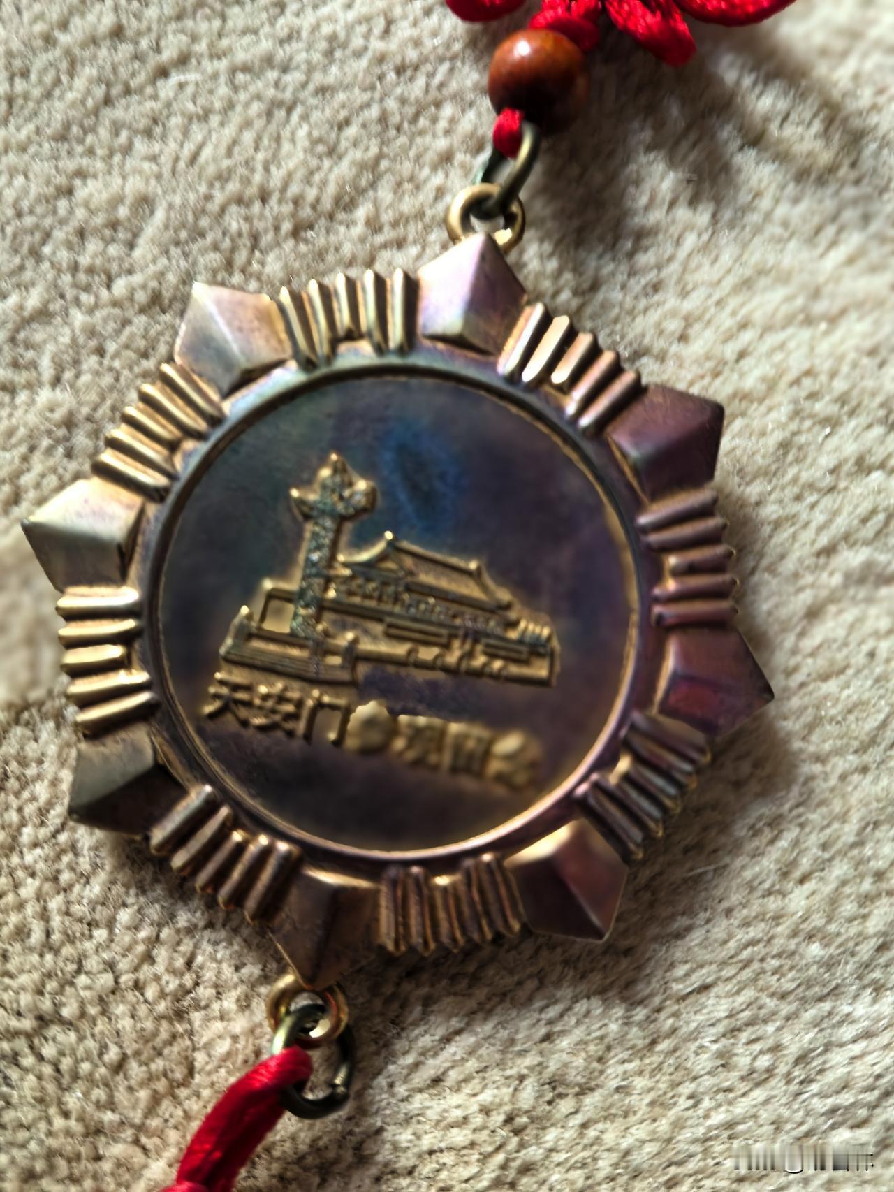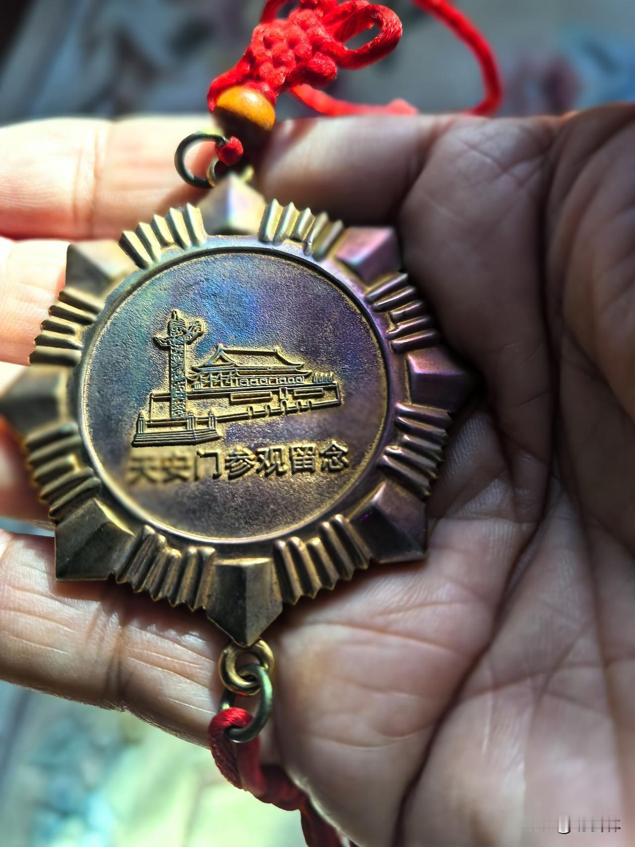 这是三十多年前,我到北京出差,参观天安门城楼后买的一枚纪念章。纯金属材质,一面是毛主席的浮雕像,另外一面是天安门城楼和华表的浮雕。如今虽然已经褪去了光泽,但纪念章放到掌心依然沉甸甸的份量,不禁暗暗赞叹设计和做工以及材质的精美过硬。这个纪念章刚开始挂在我驾驶的汽车的后视镜旁,一动车就能看到它。后来被我收了起来,精心保存了下来。纪念章 我爱北京天安门 情感 易会林随手拍