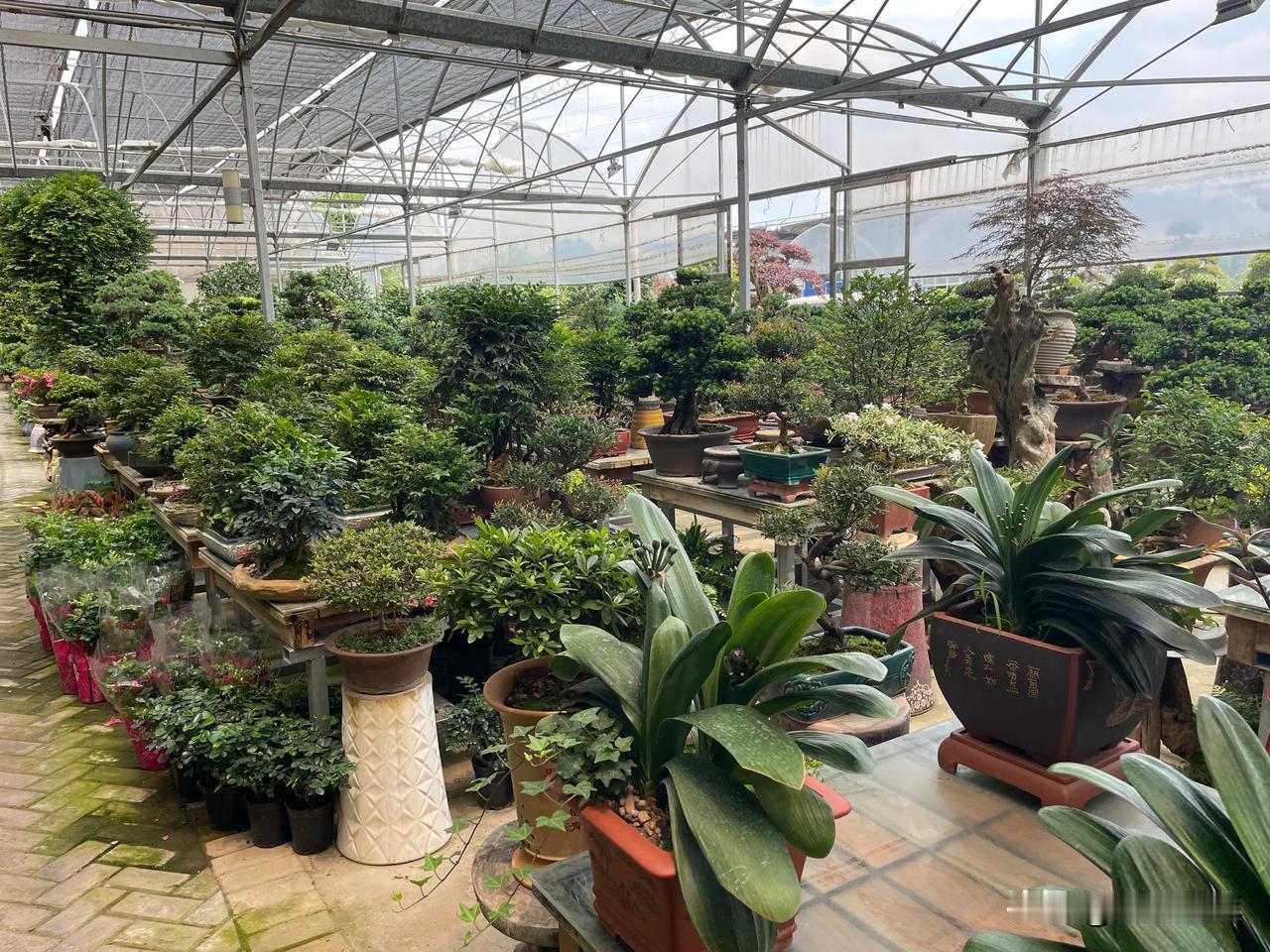 数不清的树苗盆景,精致的小亭子,气魄的石牌坊,还有各种各样的庭院造景与奇石小品相映成趣。