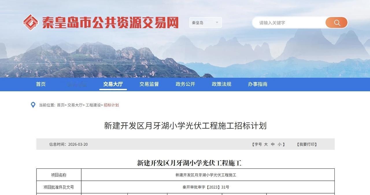 新建开发区月牙湖小学光伏工程,施工项目总投资5800万元,招标估算额33万元!