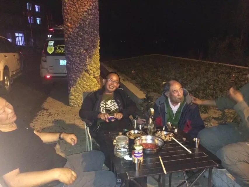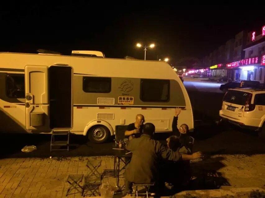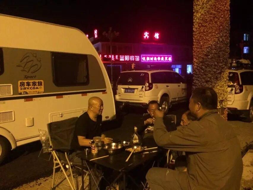 这个小镇环境不错,几个人把自己的菜分别摆出来,男人一桌,女人一桌,到了晚上十点多才回车休息,早早休息,明天继续前进。