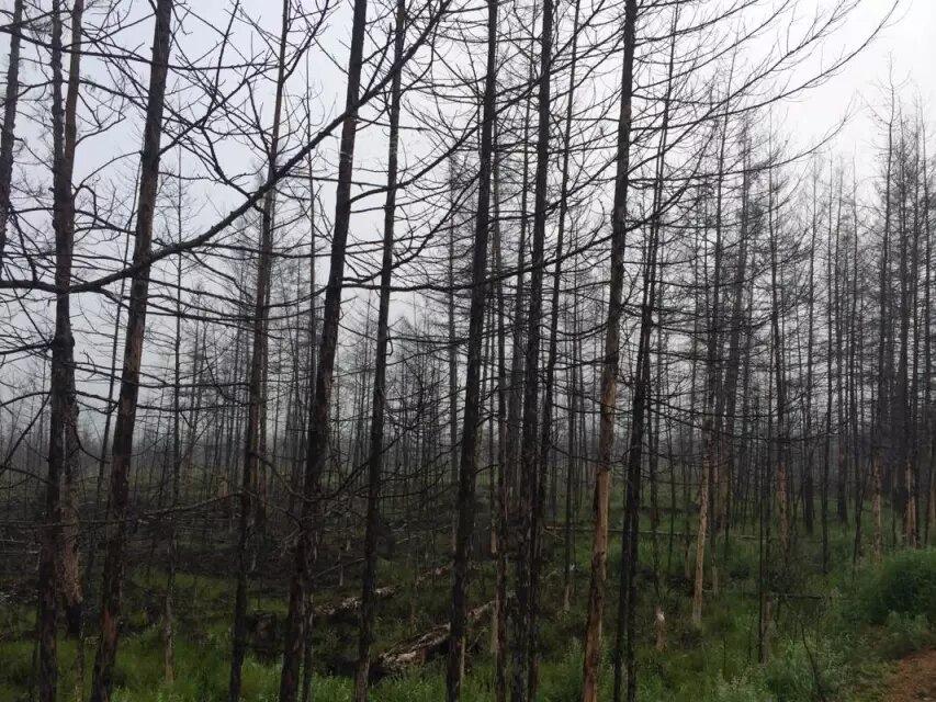 进入黑龙江后几十公里,就到了那年大火的地方,估计很多人都记得这个损失惨重的事件,大火把土地给烧坏了,树木都不好长,哩哩啦啦的,我们往里面走了不到两公里,和路边一样,都是大火烧掉的痕迹,这么多年过去了,还没有恢复正常,水火无情啊,这深刻的教训值得深深牢记。