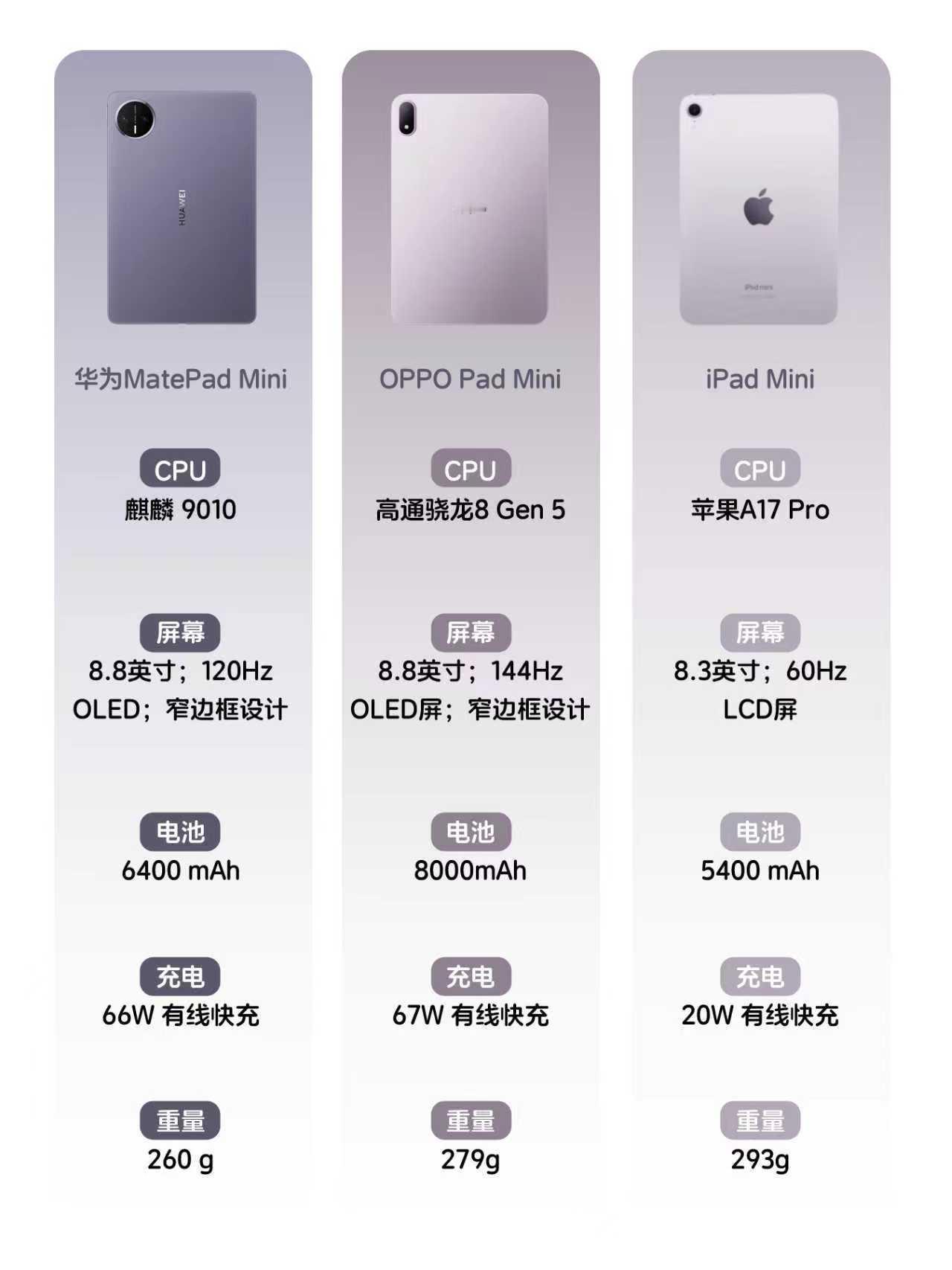 大家发现没有?加入小屏平板竞争的品牌是越来越多了,以前基本只能选iPad,现在华为、OPPO也加入进来了,对消费者来说选择也是多起来了~