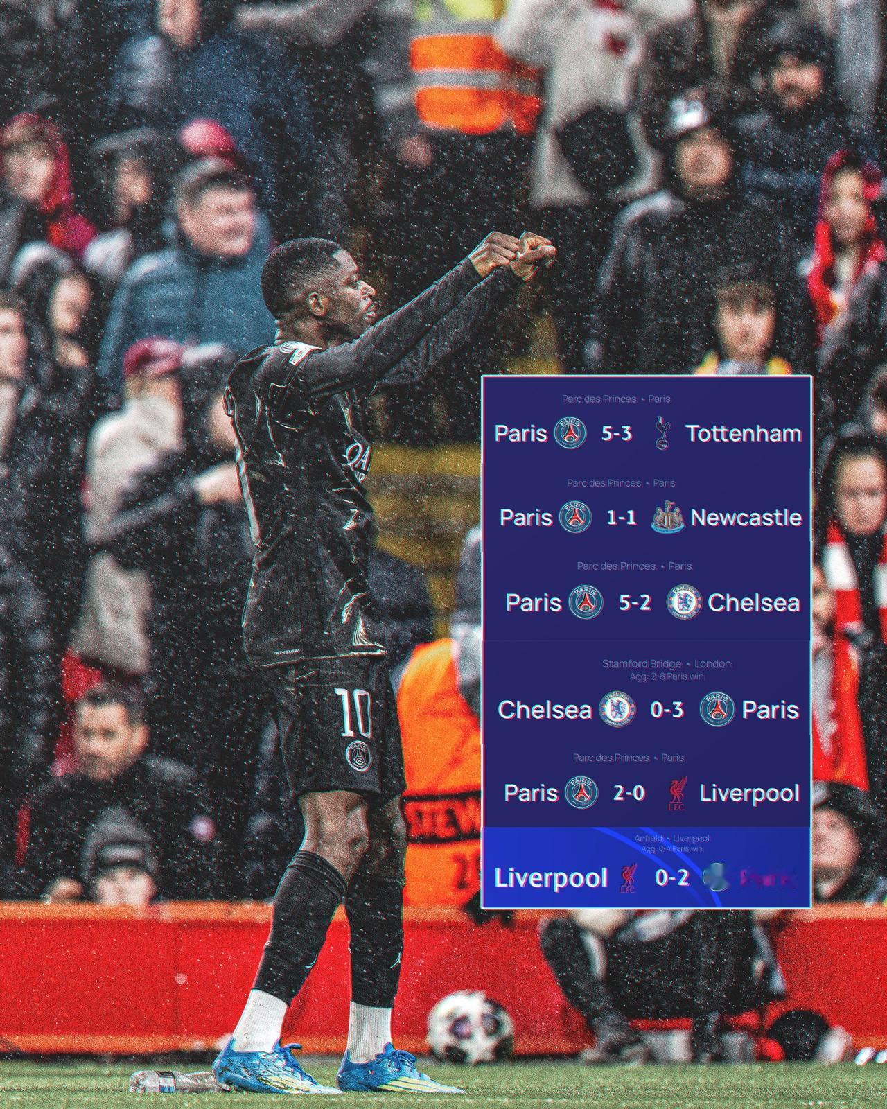 巴黎连续第3年进入欧冠四强,也是队史第六次。而且面对英超球队,大巴黎占据绝对优势。