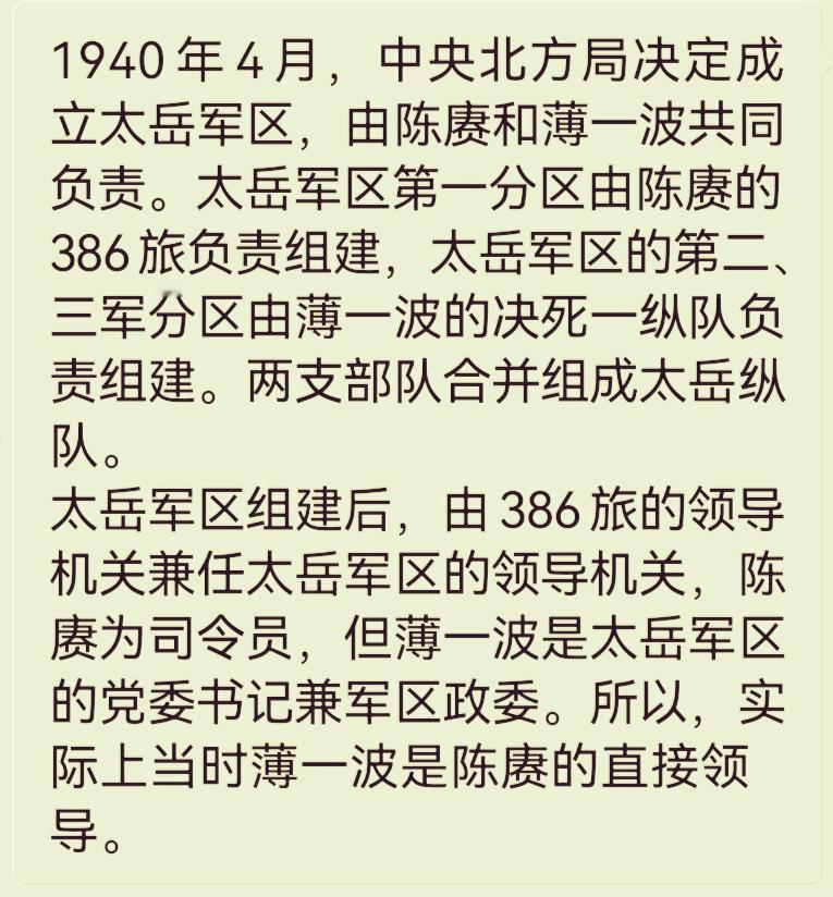 第一决死纵队编入后,薄一波也来到太岳军区,延安直接给了他太岳区党委书记兼军区政委的职务,而原来的军区政委王新亭则转任政治部主任,降了半级。这样,薄一波完成了“第一跳”,转为二级区党委、军区的一把手,也成了陈赓的顶头上司。在党的“七大”上,薄一波在毛泽东主席的举荐下,当选为中央委员。而陈赓则是中央候补委员。由此可见,毛泽东和中央对薄一波的器重。