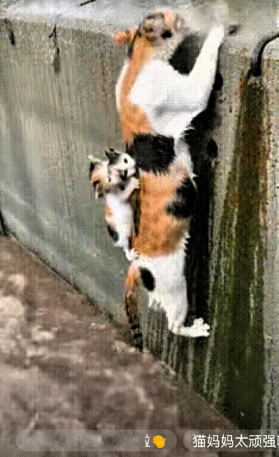 看到猫妈妈背着两只小猫奋力往岸上爬又落水的画面,心都揪起来了。