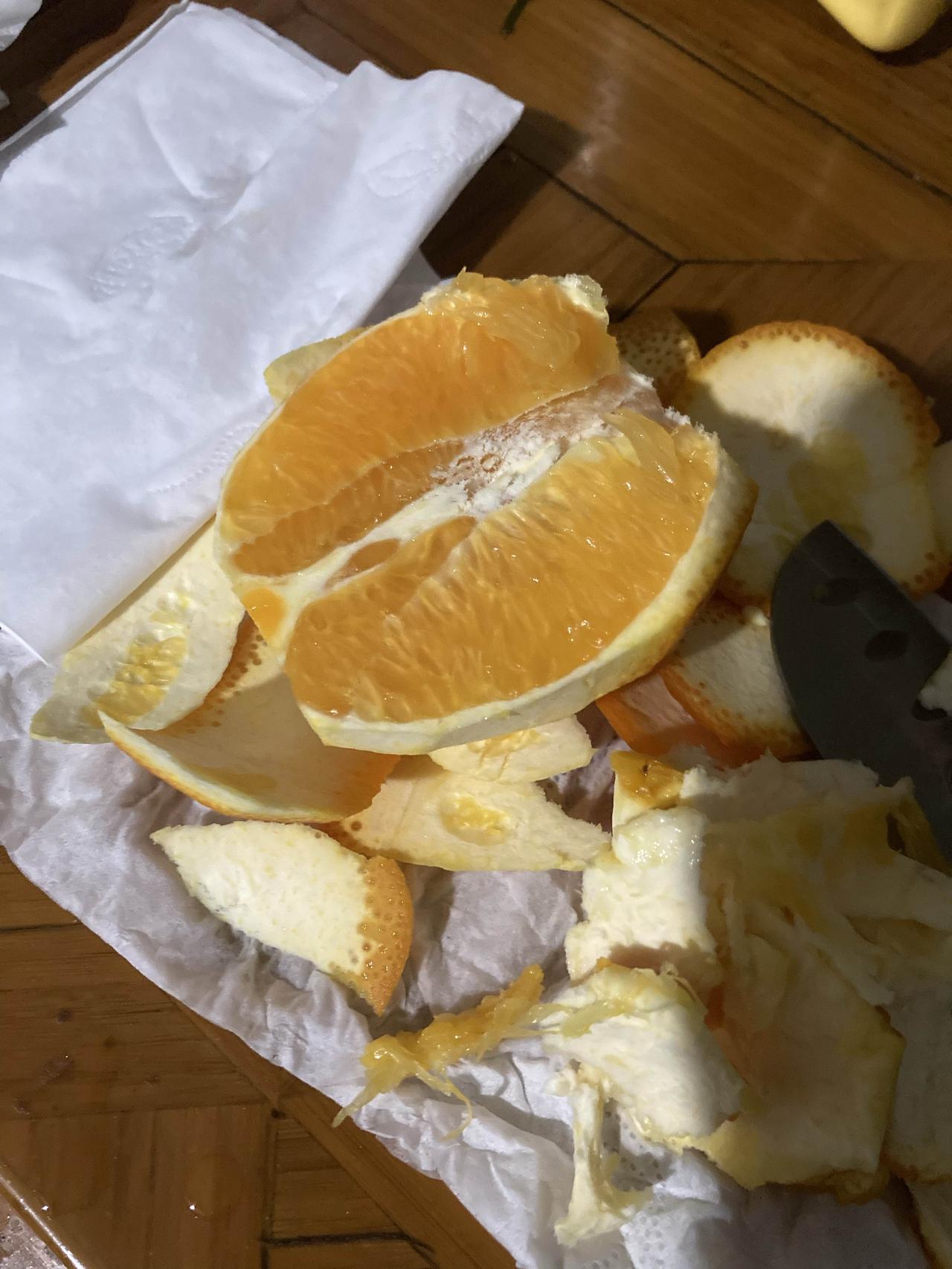 抖音买的伦晚脐橙到了几天了,这么多天我才吃了一个,六块钱一斤,确实新鲜,树上刚摘的。就是水分不是特别充足,我也不是果农,不知道原因是什么,有懂的吗?应该是很少打药吧?赣南脐橙打药多,水分充足,伦晚好像打药很少,水分比赣南脐橙少。