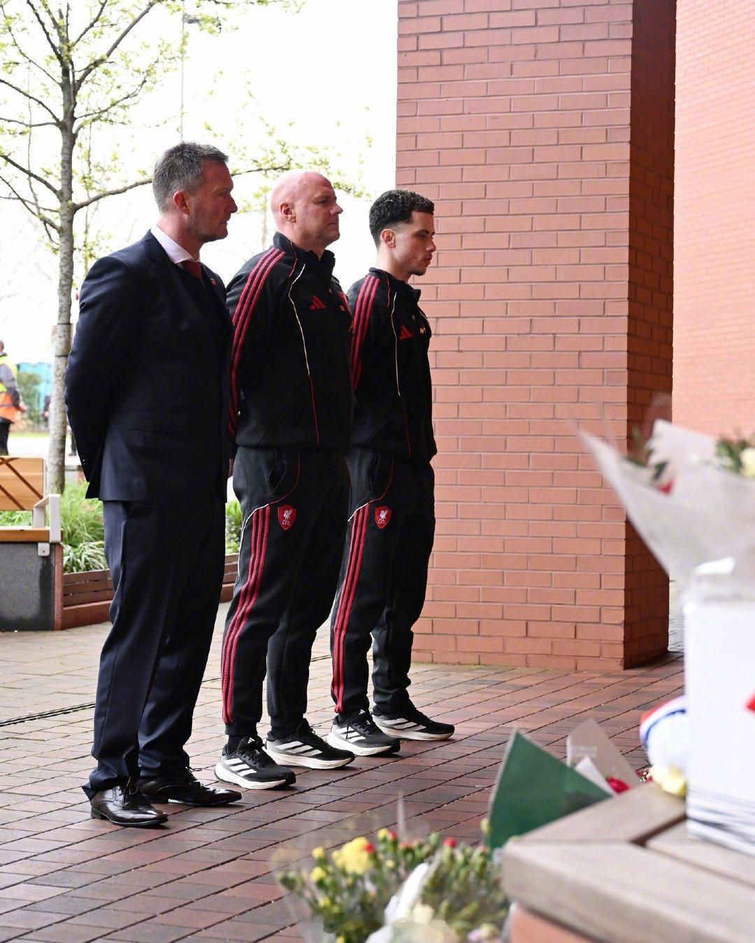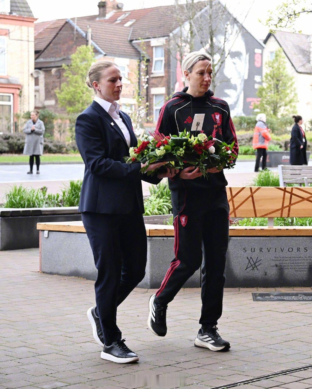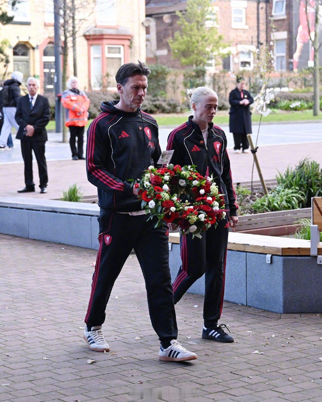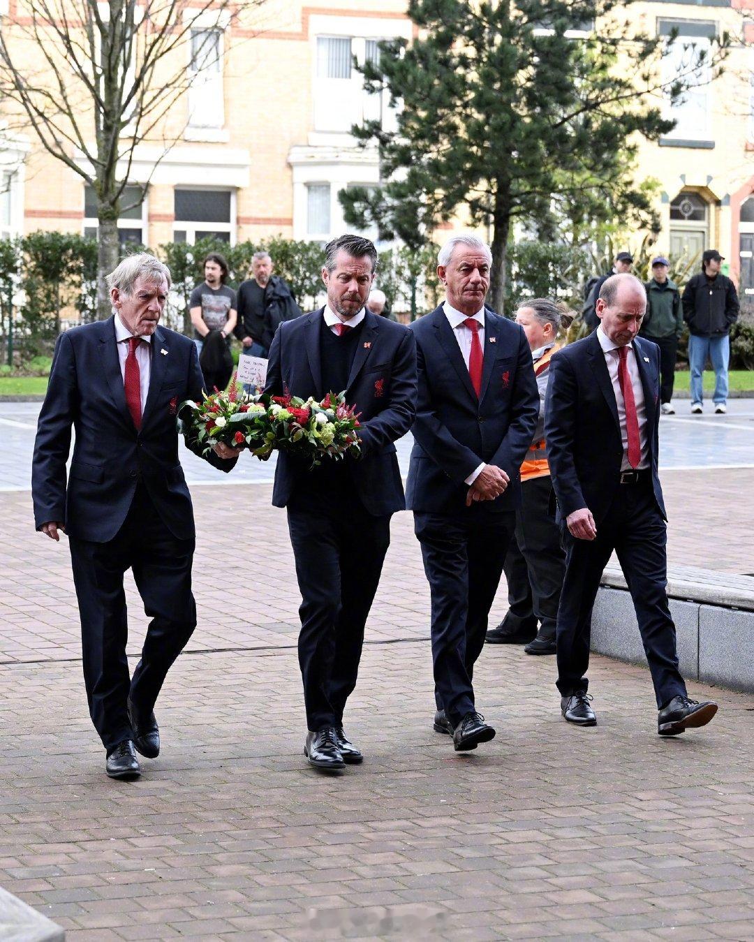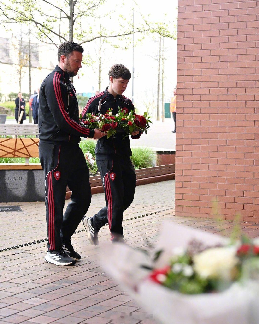 今日早些时候,利物浦男足、女足、U21、U18队长和主教练,以及俱乐部官员,在安菲尔德希尔斯堡纪念碑前敬献花圈 cr:利物浦足球俱乐部