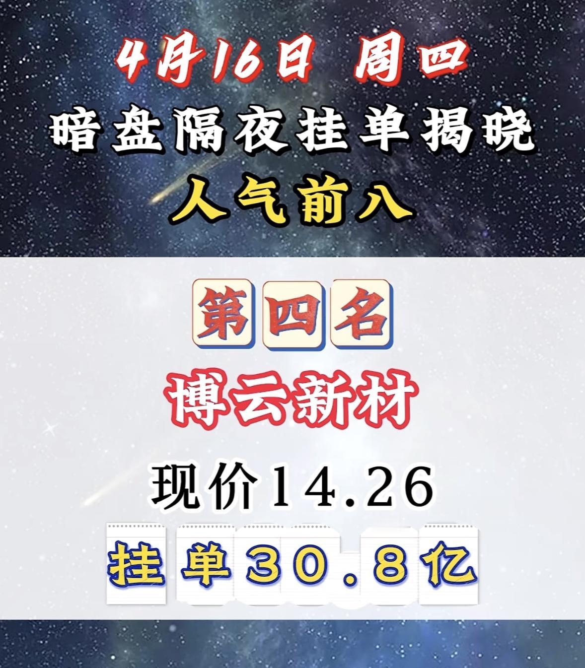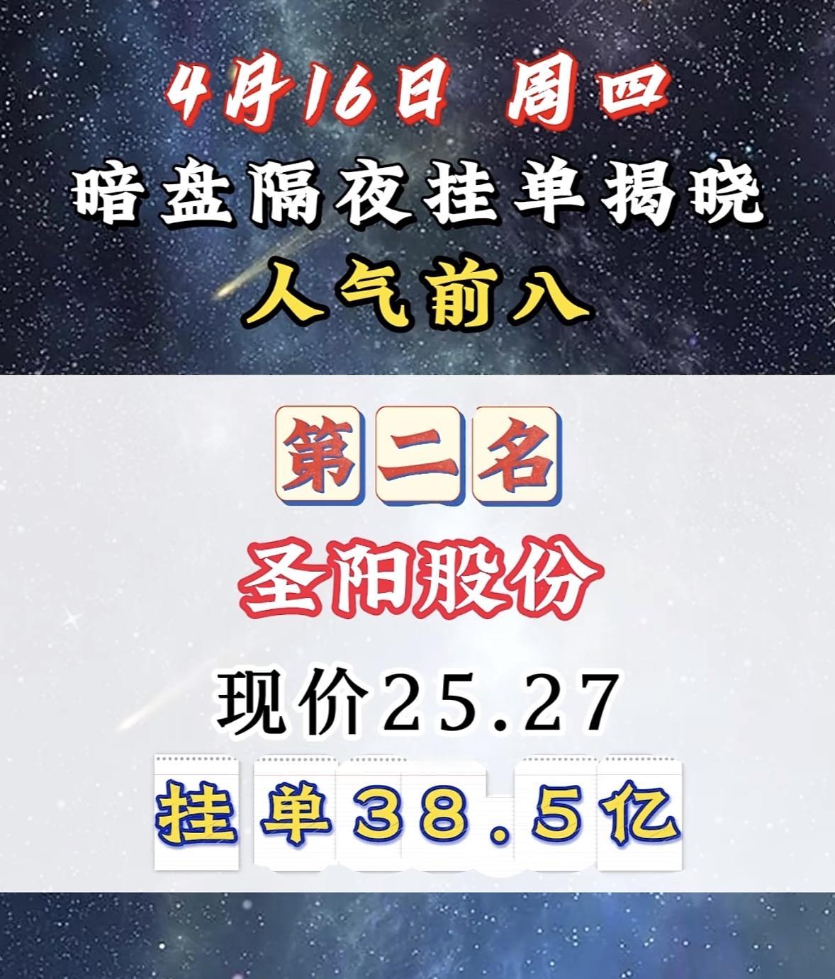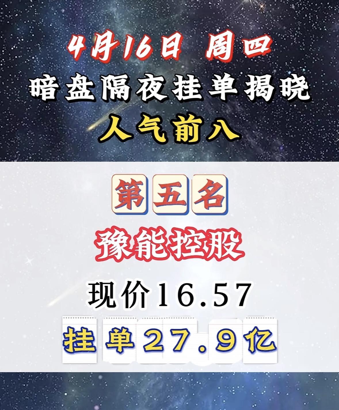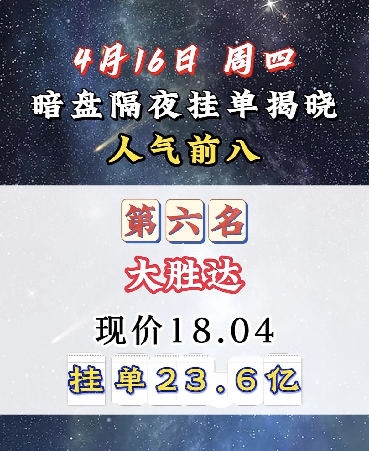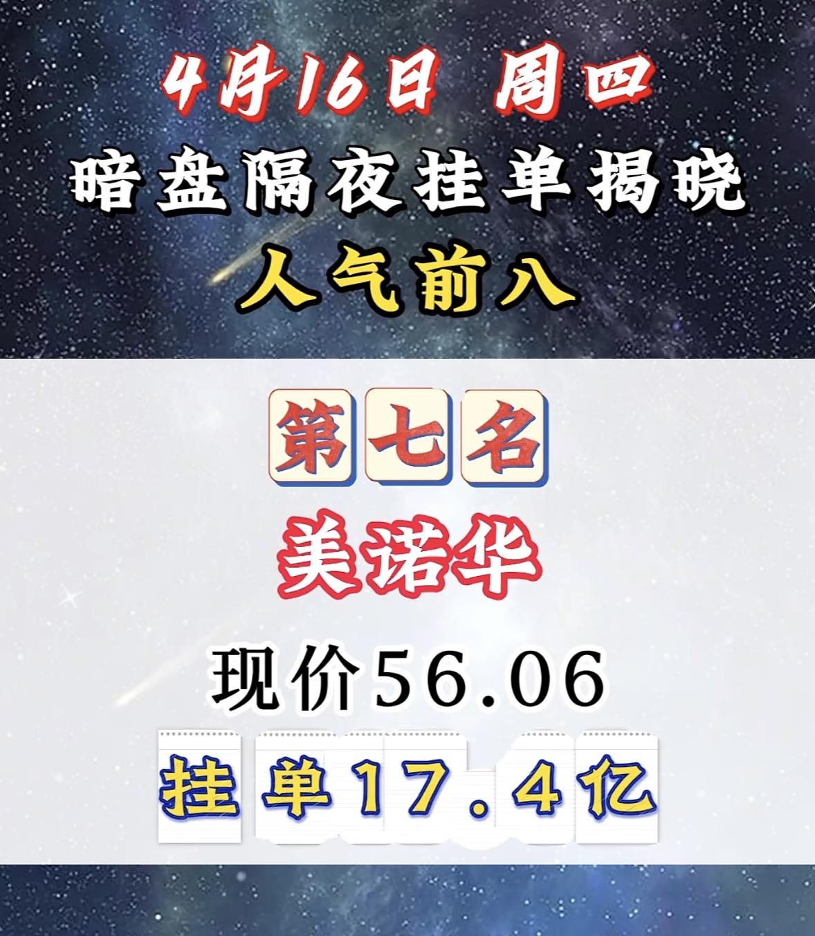 4月16日周四暗盘隔夜挂单排行榜出炉