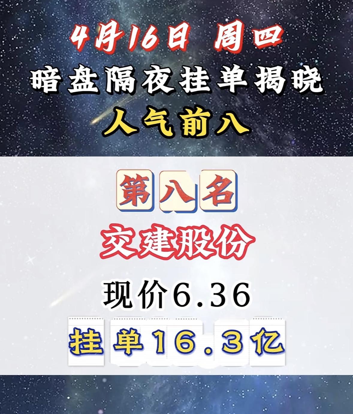 4月16日交建股份暗盘揭晓,现价6.36,挂单16.3亿,这阵仗可不小。此前3月13日股价6.63,总市值41.03亿。不过交建股份状况挺复杂,2025年预计全年亏损3.50亿至7.00亿,净利润同比下降368.73%至637.46%,还有诉讼仲裁等事儿。而且实际控制人俞发祥因涉嫌犯罪被采取刑事强制措施。虽说有人觉得主业根基牢固、低吸是机会,但在这么多不确定因素下,这暗盘表现和巨额挂单,后续走向真不好说,股民们可得多留个心眼。