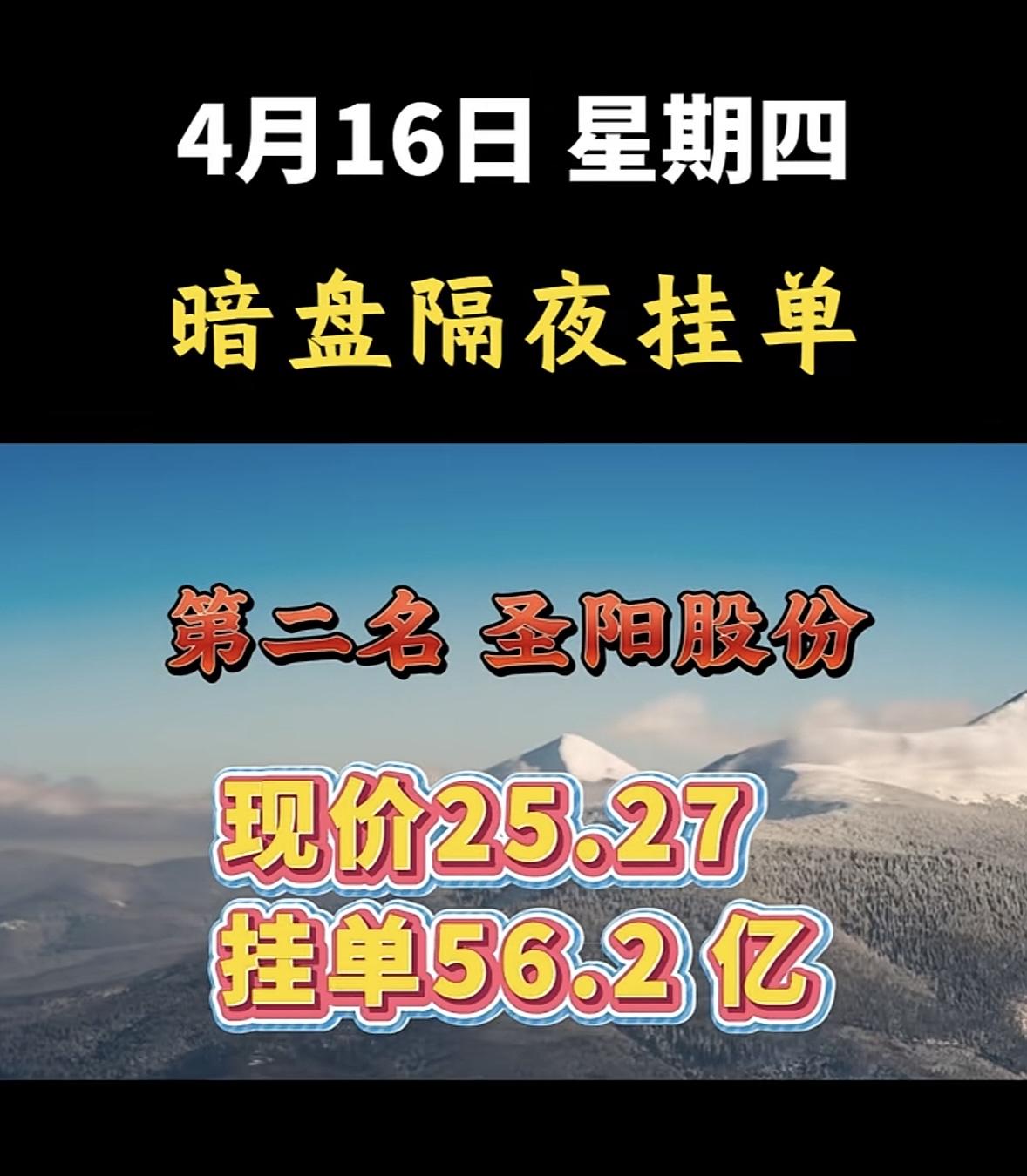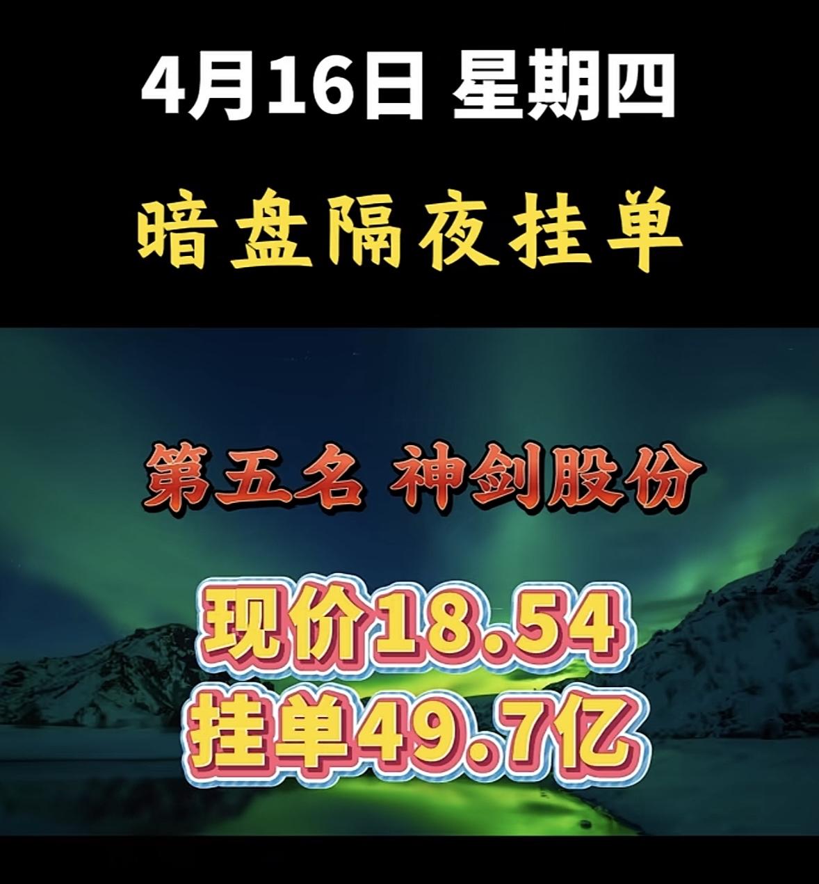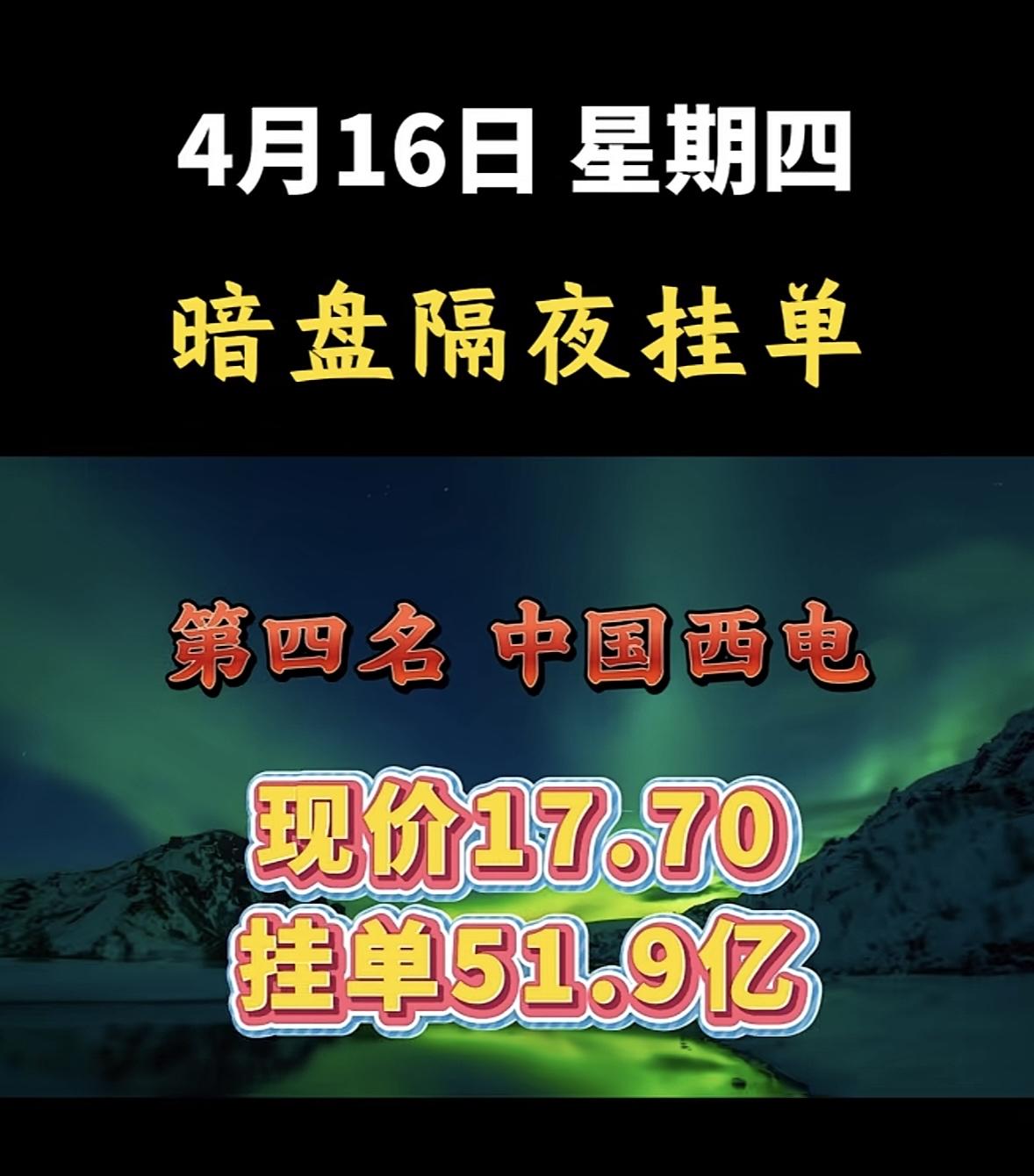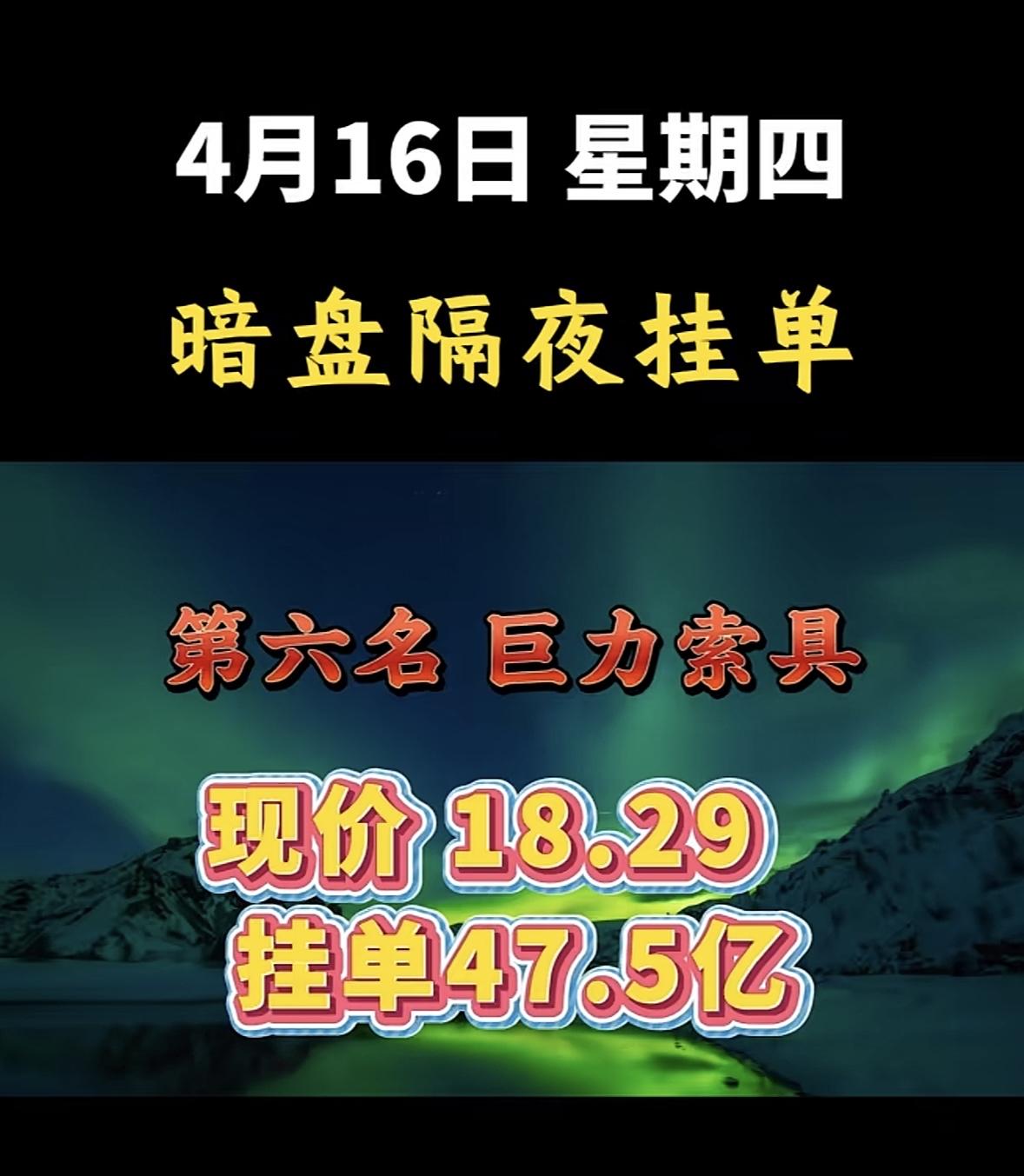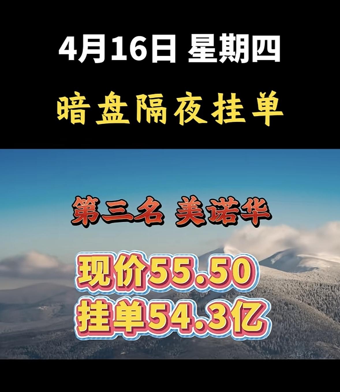4月16日周四暗盘隔夜挂单排行榜揭晓