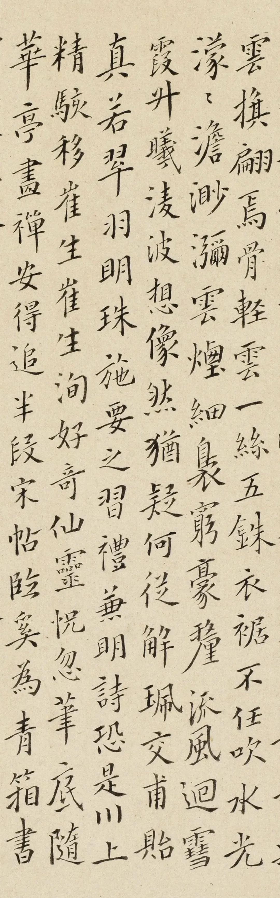 他的小楷根基在欧阳询和虞世南,结构非常稳当。字小到一定程度的时候,一般人早就控制不住了,可他的笔画照样起止清楚,一点不含糊。