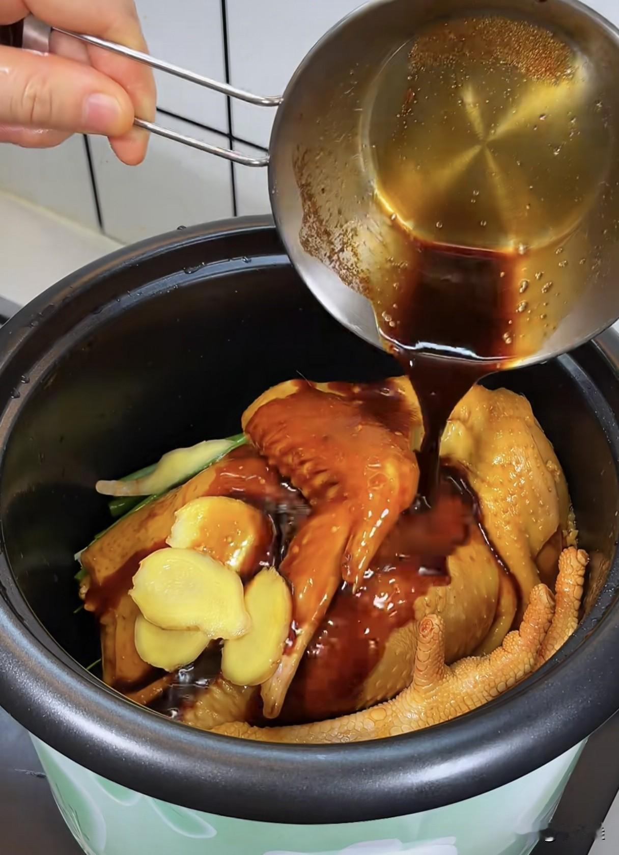 我老姨做了30年的电饭锅焗鸡,从来不用复杂厨具,不加一滴水,每次做都香满整栋楼,鸡肉嫩到一撕就脱骨,连骨头都入味,小时候只有过年才能吃上,端上桌就是全场焦点,倍有面子。