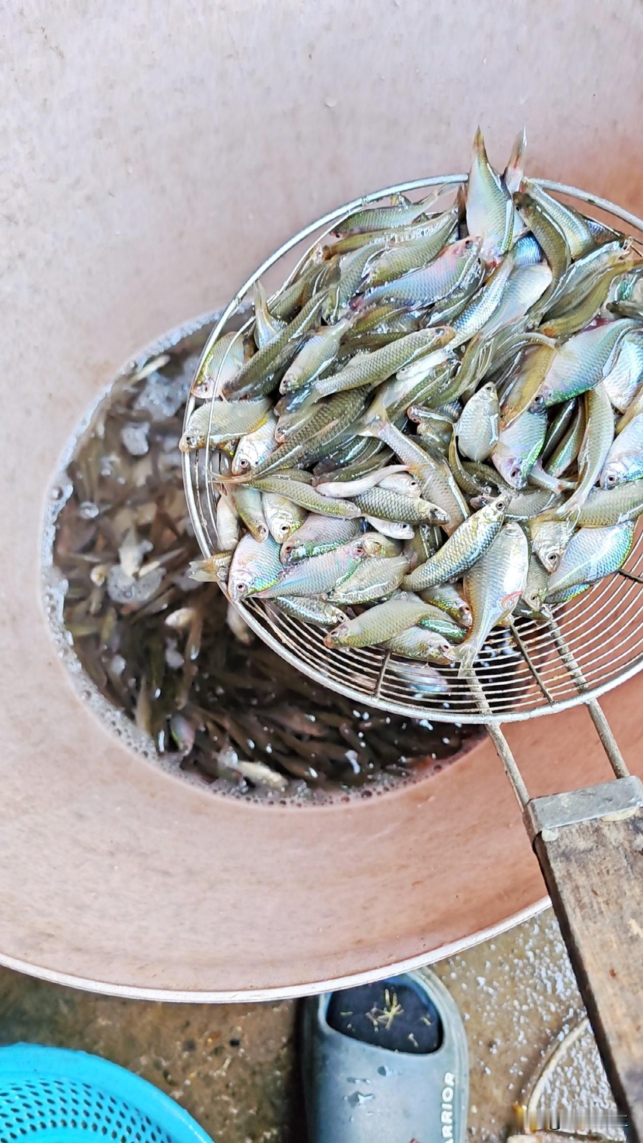 就是这种鱼,在我们农村拿来喂鸡喂鸭的,但是现在想吃都难了,这种鱼虽然很苦,但是味道非常的鲜美,比那些10斤8斤的草鱼好吃多了。现在人都追求健康,所以喜欢吃这种小鱼小虾,大鱼跟他比真的是没法比的,我宁愿吃这种小鱼,也不去买那些饲料货