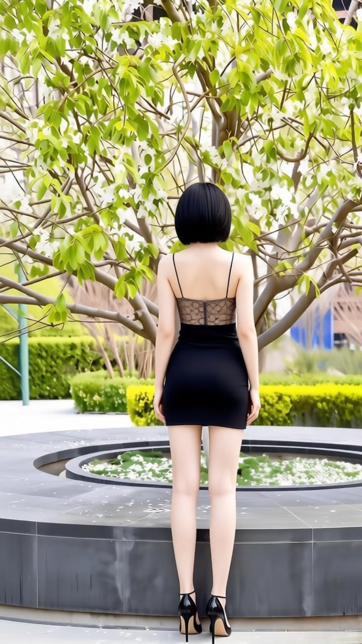 女人如何穿出含蓄的性感? 优雅黑裙,都市绿意,时尚与自然的完美融合分享唯美的美照