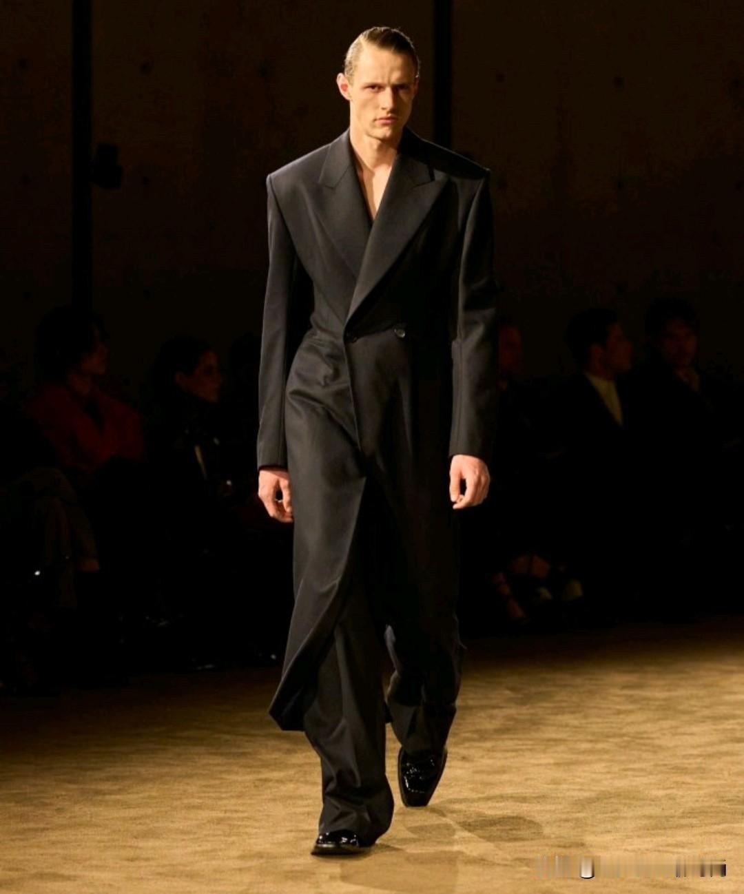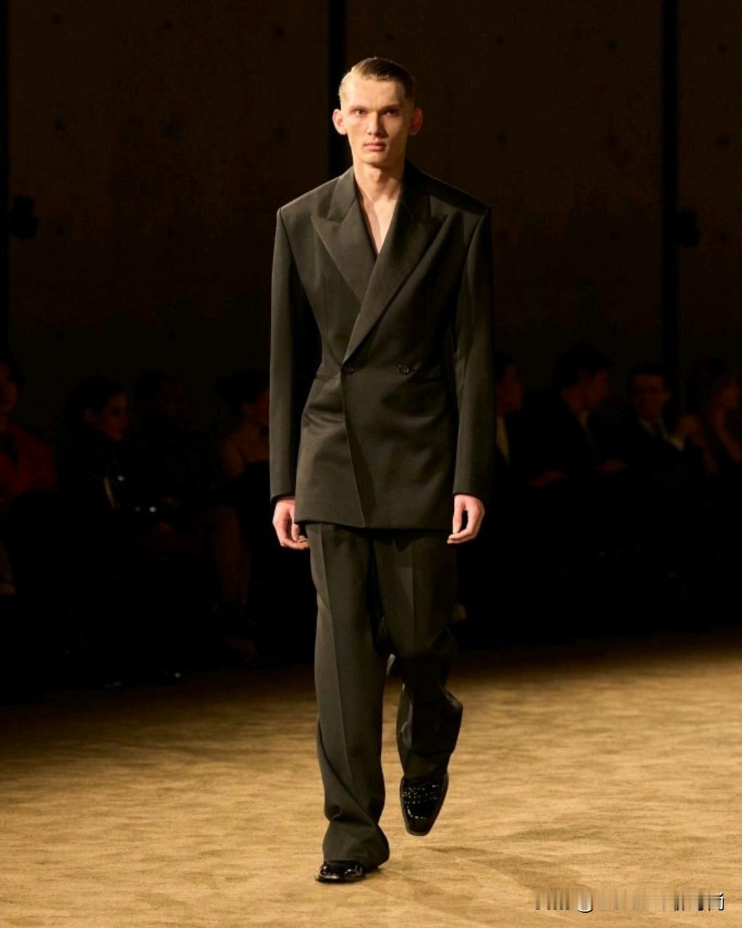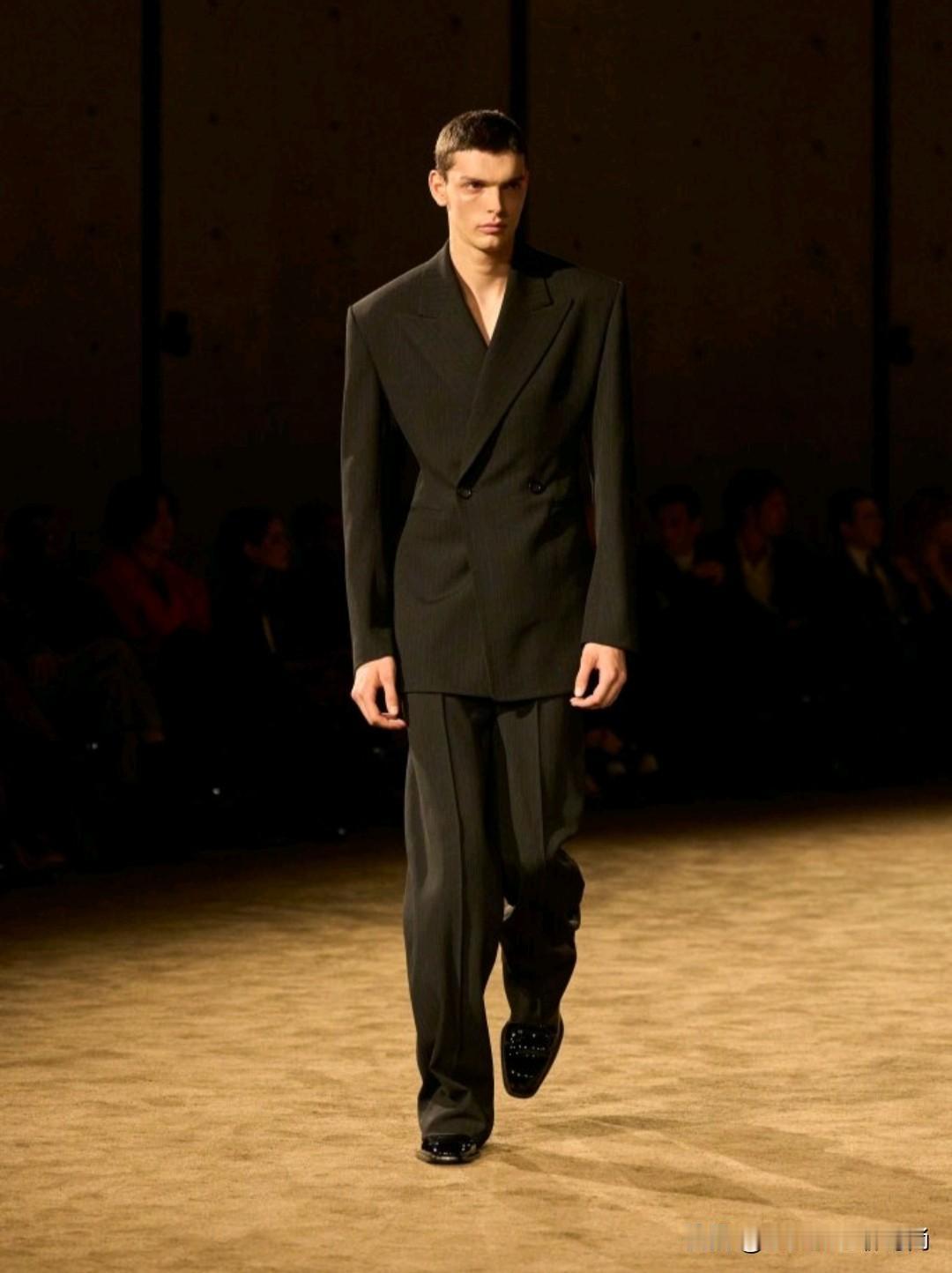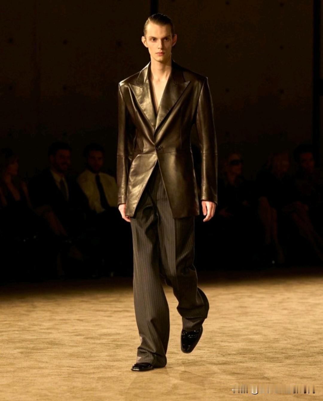 Saint Laurent 2026秋冬男装,以利落廓形续写品牌经典冷冽美学。本季革新标志性吸烟装,收腰剪裁搭配宽肩线条,勾勒凌厉又松弛的男性轮廓。深棕、炭黑等低饱和色调贯穿,皮革、毛呢与丝绒材质碰撞,细节处暗藏精致锋芒,完美诠释YSL式的都市先锋格调。