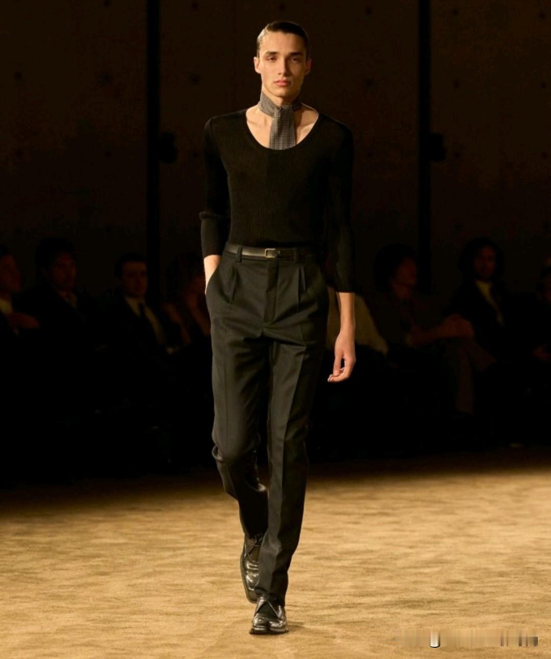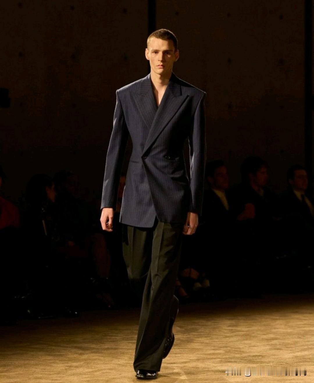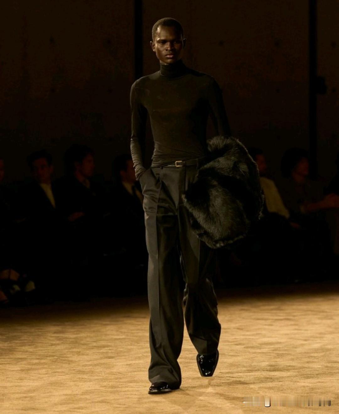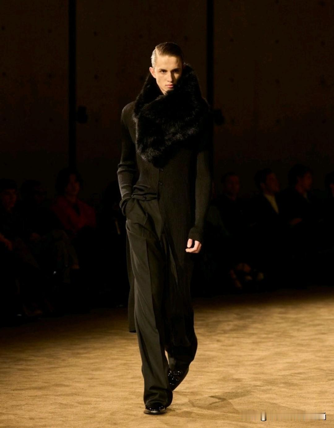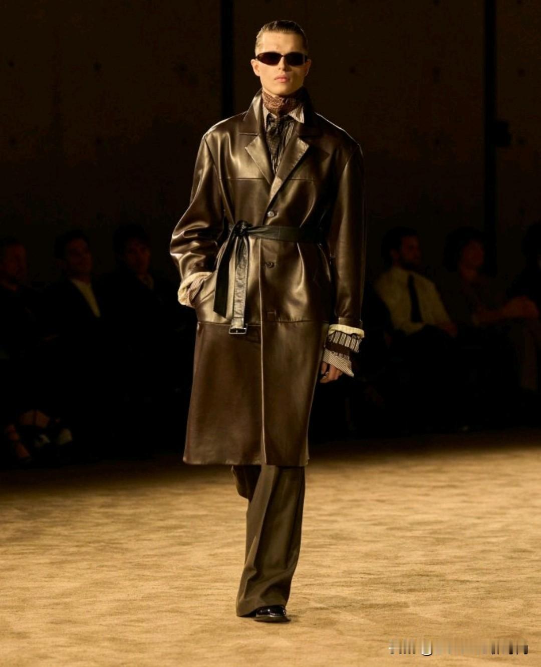 Saint Laurent 2026秋冬男装,以利落廓形续写品牌经典冷冽美学。本季革新标志性吸烟装,收腰剪裁搭配宽肩线条,勾勒凌厉又松弛的男性轮廓。深棕、炭黑等低饱和色调贯穿,皮革、毛呢与丝绒材质碰撞,细节处暗藏精致锋芒,完美诠释YSL式的都市先锋格调。