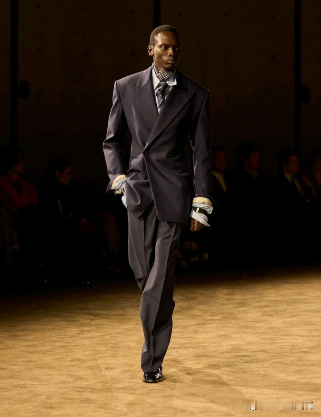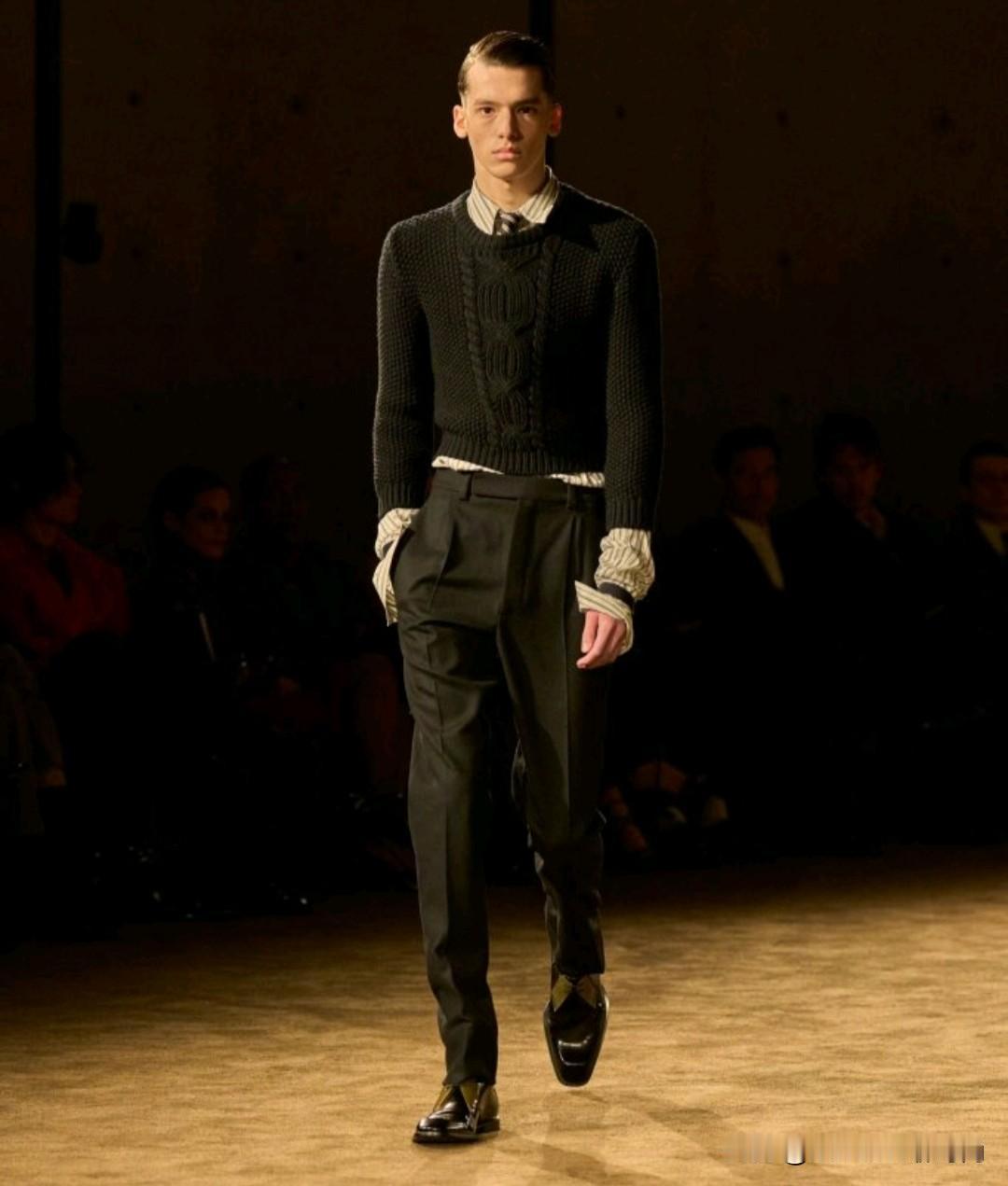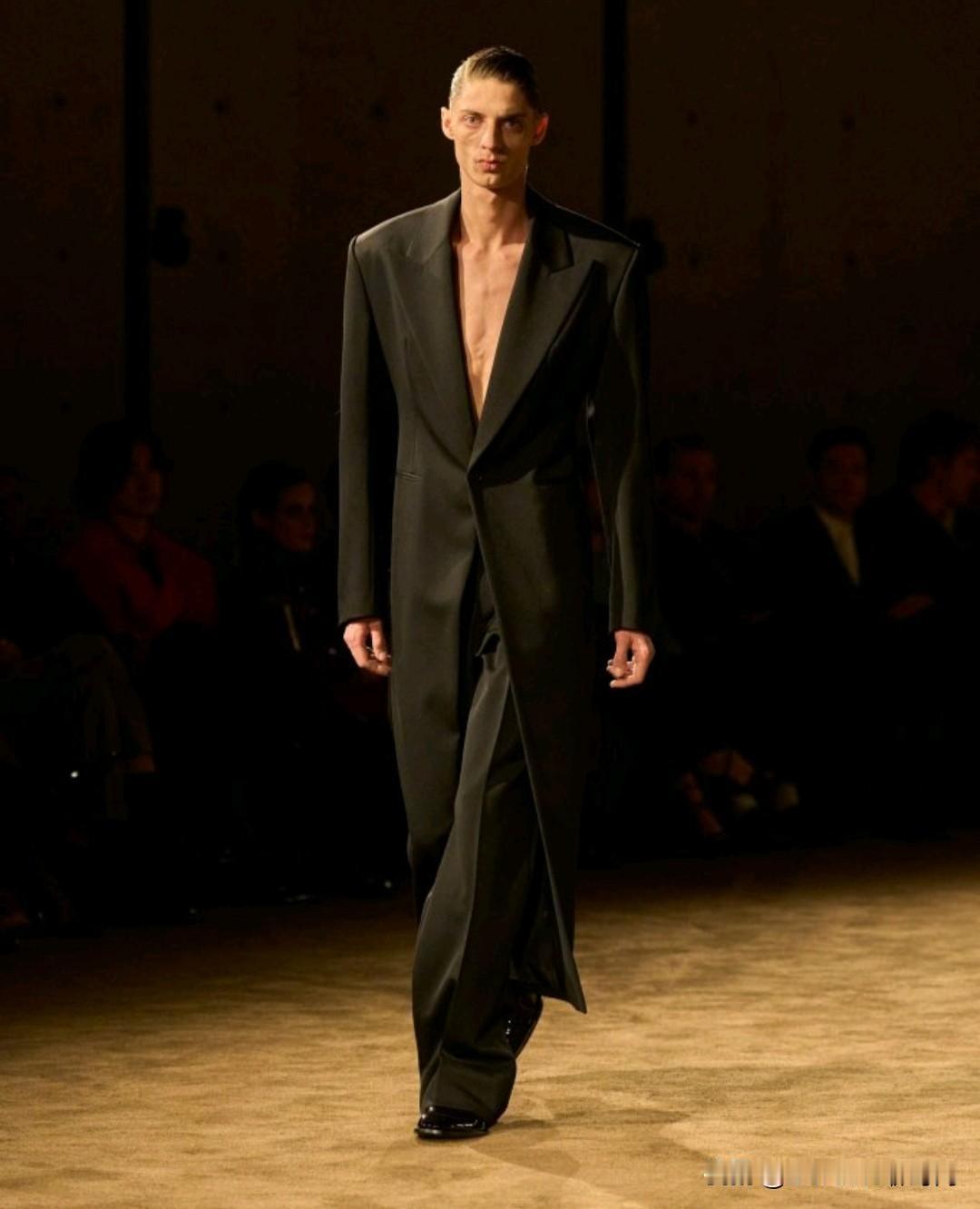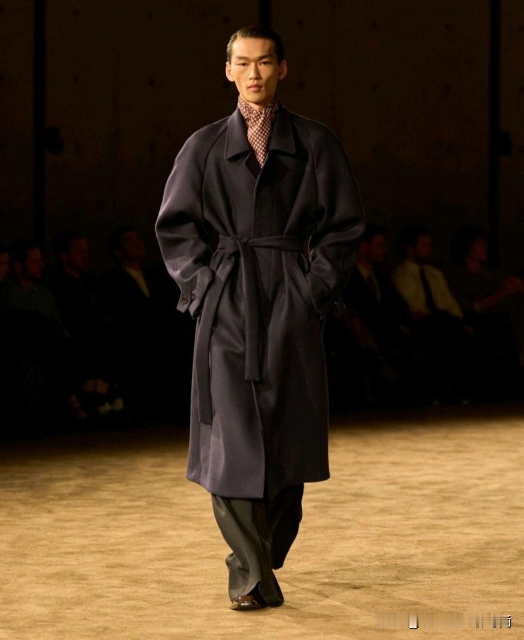 Saint Laurent 2026秋冬男装,以利落廓形续写品牌经典冷冽美学。本季革新标志性吸烟装,收腰剪裁搭配宽肩线条,勾勒凌厉又松弛的男性轮廓。深棕、炭黑等低饱和色调贯穿,皮革、毛呢与丝绒材质碰撞,细节处暗藏精致锋芒,完美诠释YSL式的都市先锋格调。
