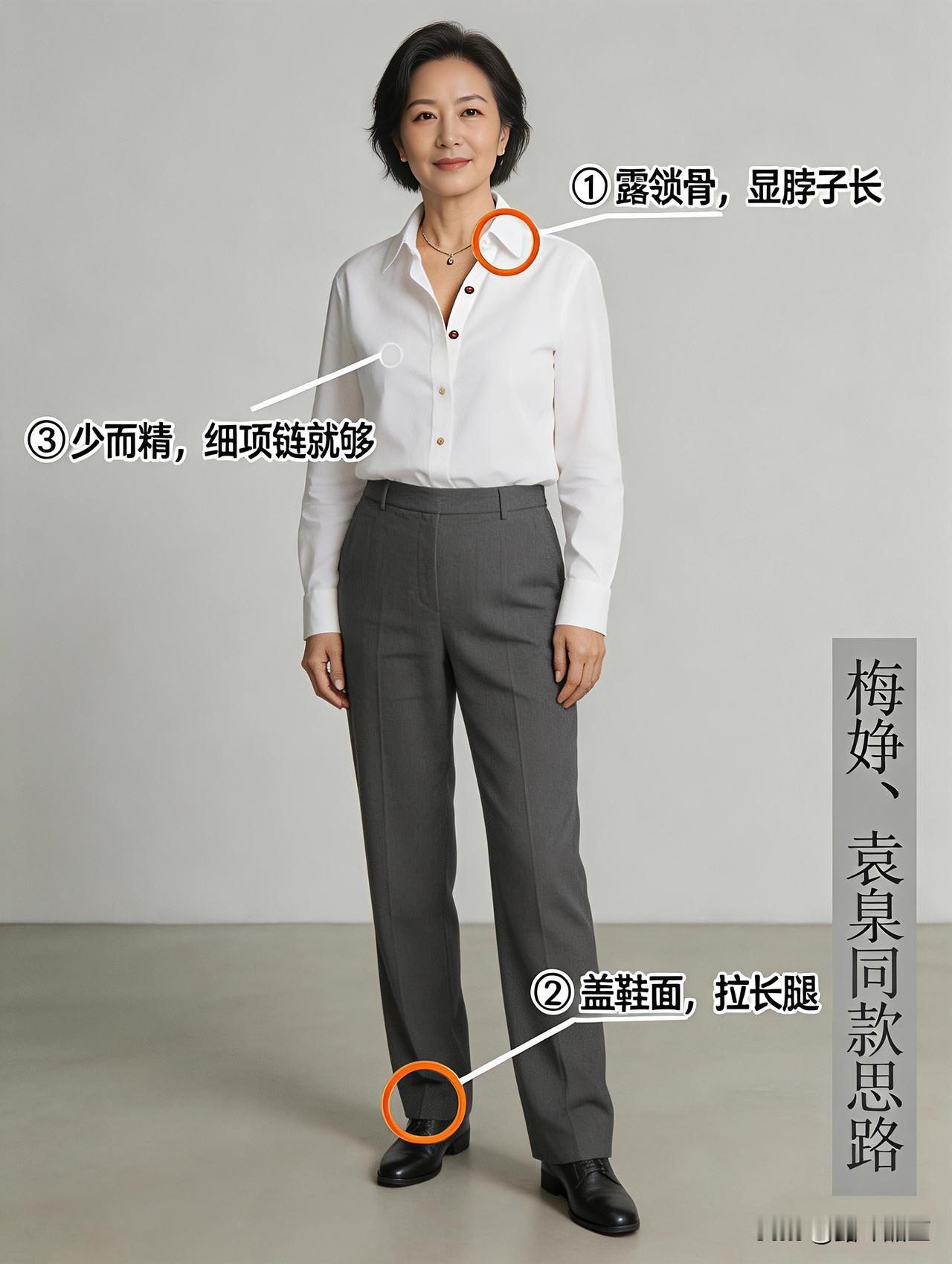 就拿我最近跟着学的搭配来说,一件简简单单的纯棉白衬衫,一条垂感好的深灰直筒裤,颜色素净,版型周正,不用费心搭配,往身上一套,整个人的精气神立马就提起来了,舒服又显气质。