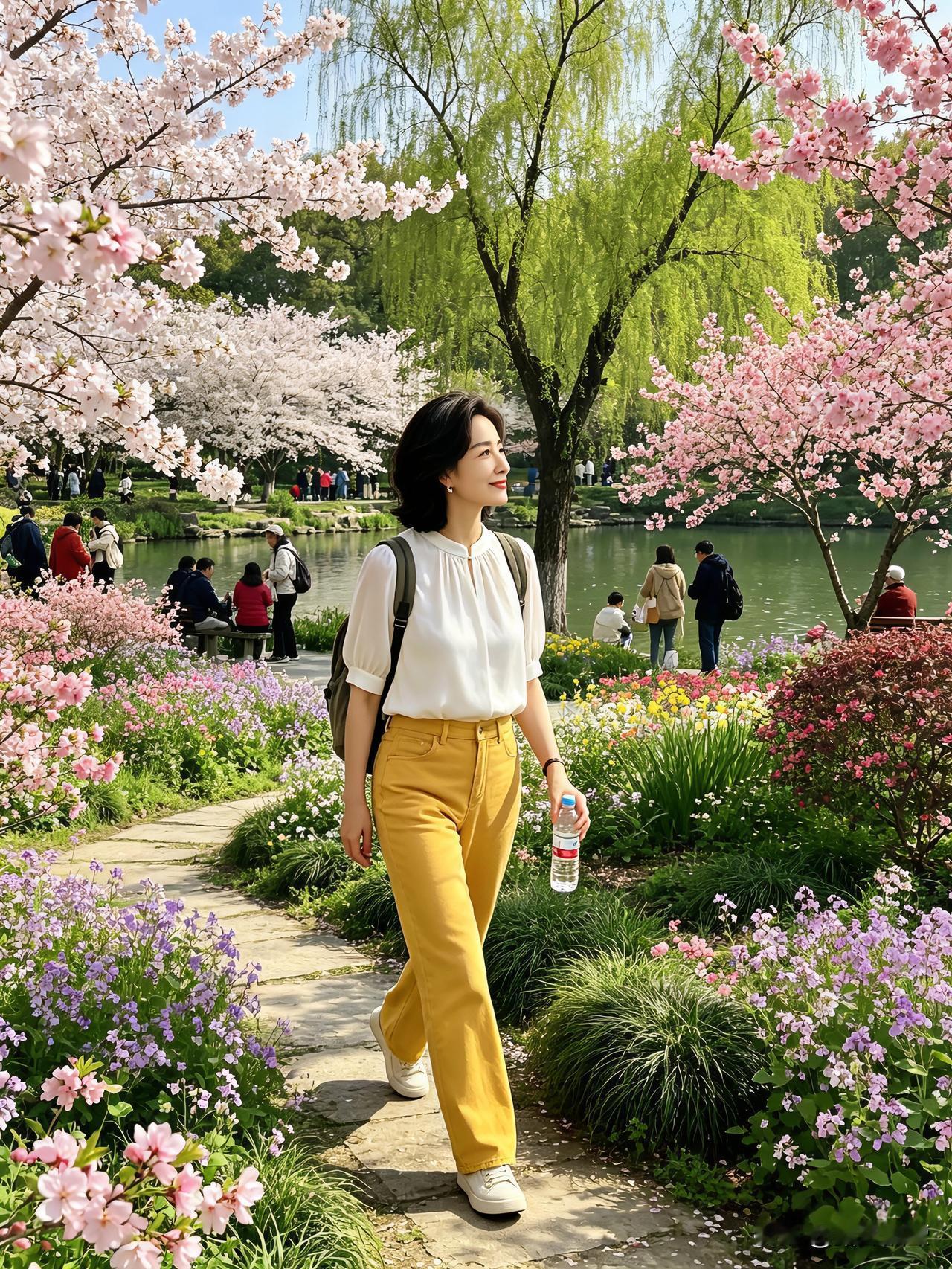 春日出游的清爽王炸。白上衣干净,黄裤子提亮,整个人元气满满。去草坪、花海拍照,温柔亮眼,气质姐姐既视感。