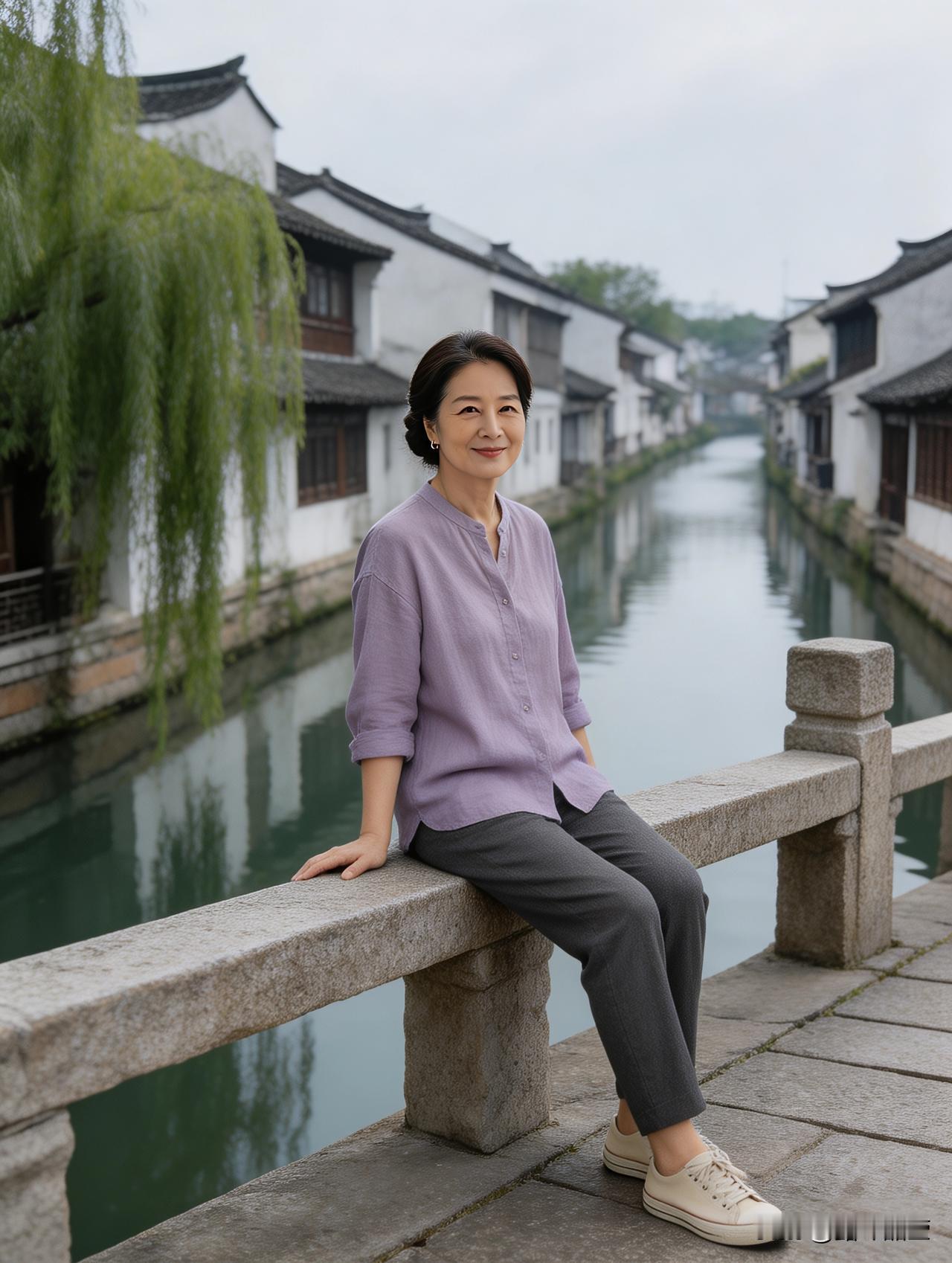 高级感拿捏得死死的。温柔紫+低调灰,不扎眼但超有质感,慵懒显瘦。逛吃或旅拍都合适,穿出咱们这个纪的从容韵味。