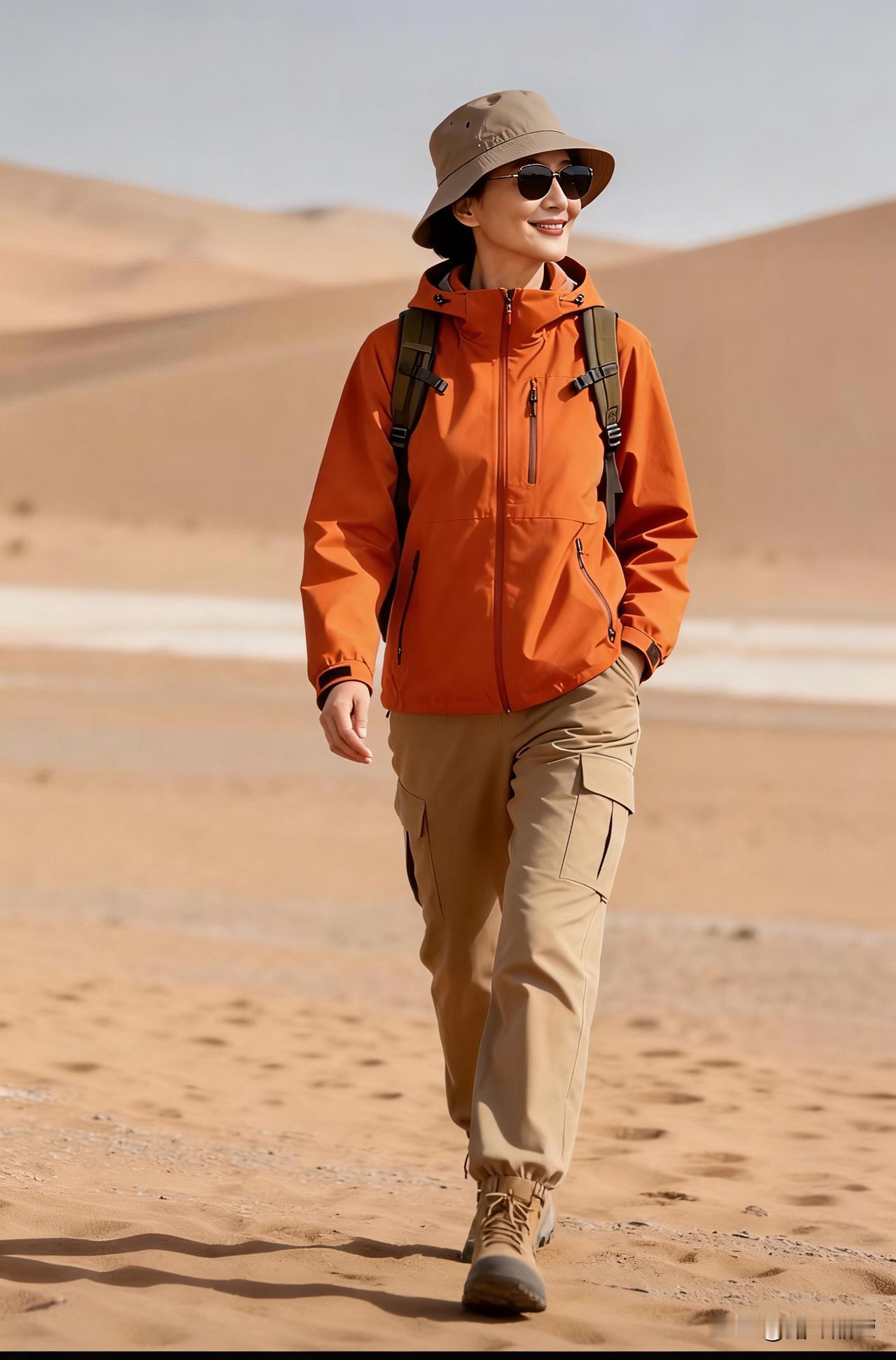 黄沙背景里显得很有气质,橙色也亮眼,拍出来很有氛围感。