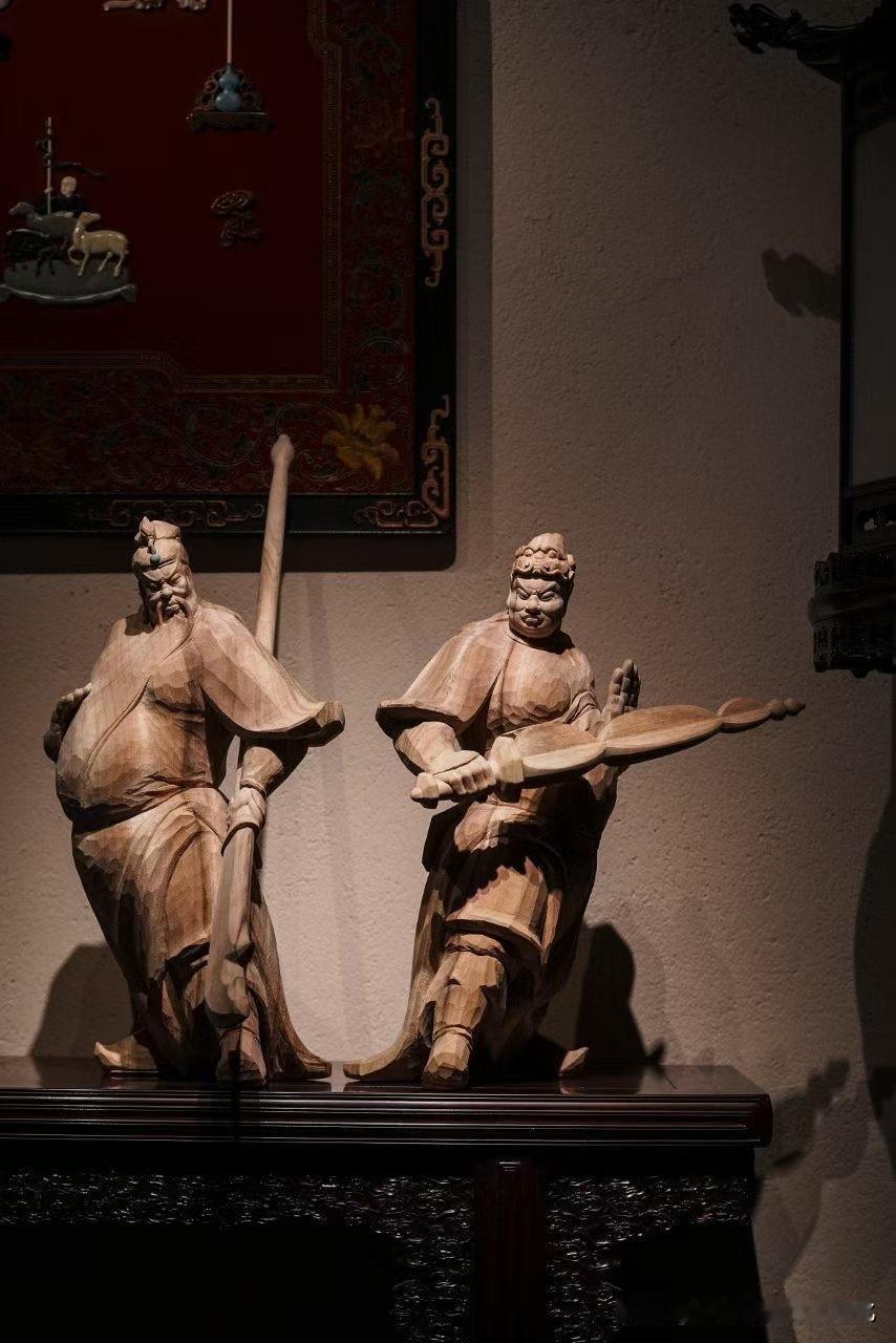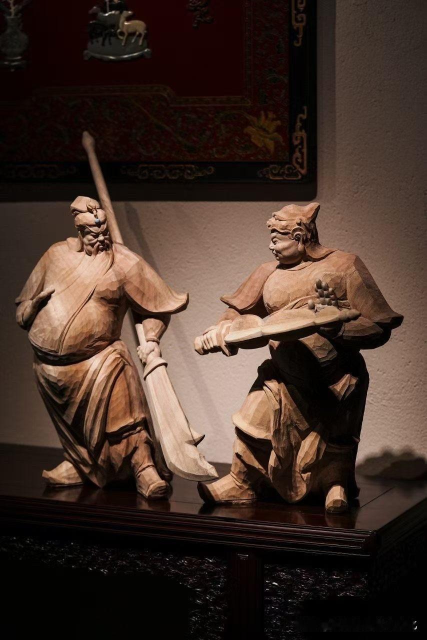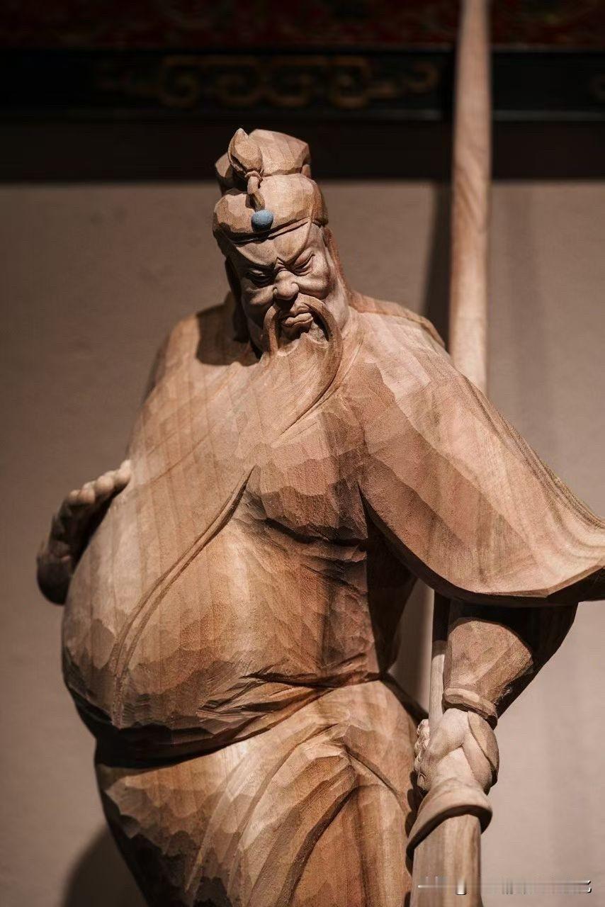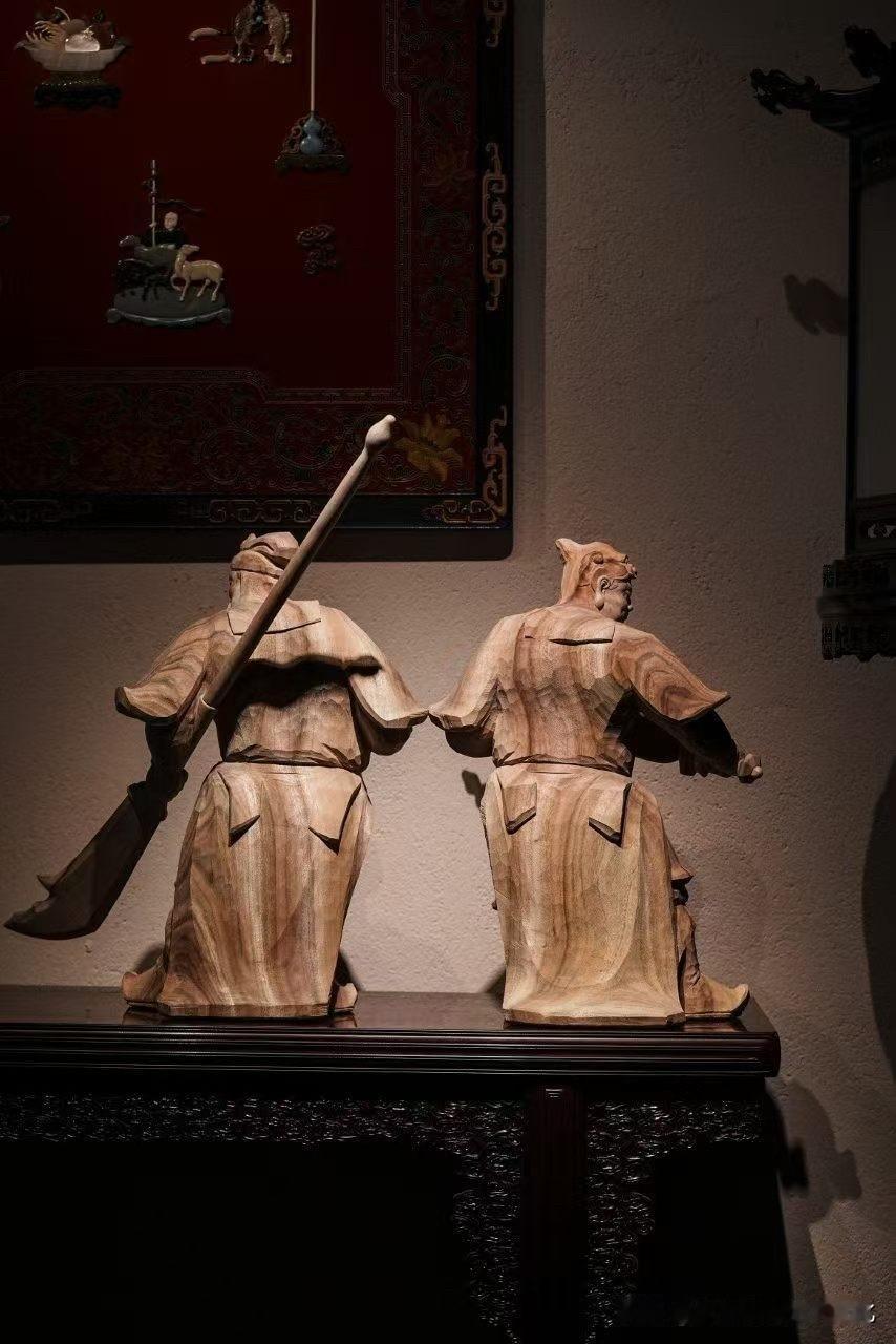 老香樟的气息不张扬,却有底子。木纹起伏如山,带着时间的沉积,撑起整尊的分量。刀法不走细碎,而是以力见形——衣褶起落有势,甲胄层叠有序,人物气场自然就立住了。