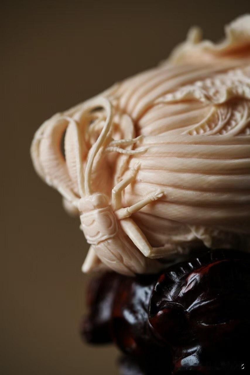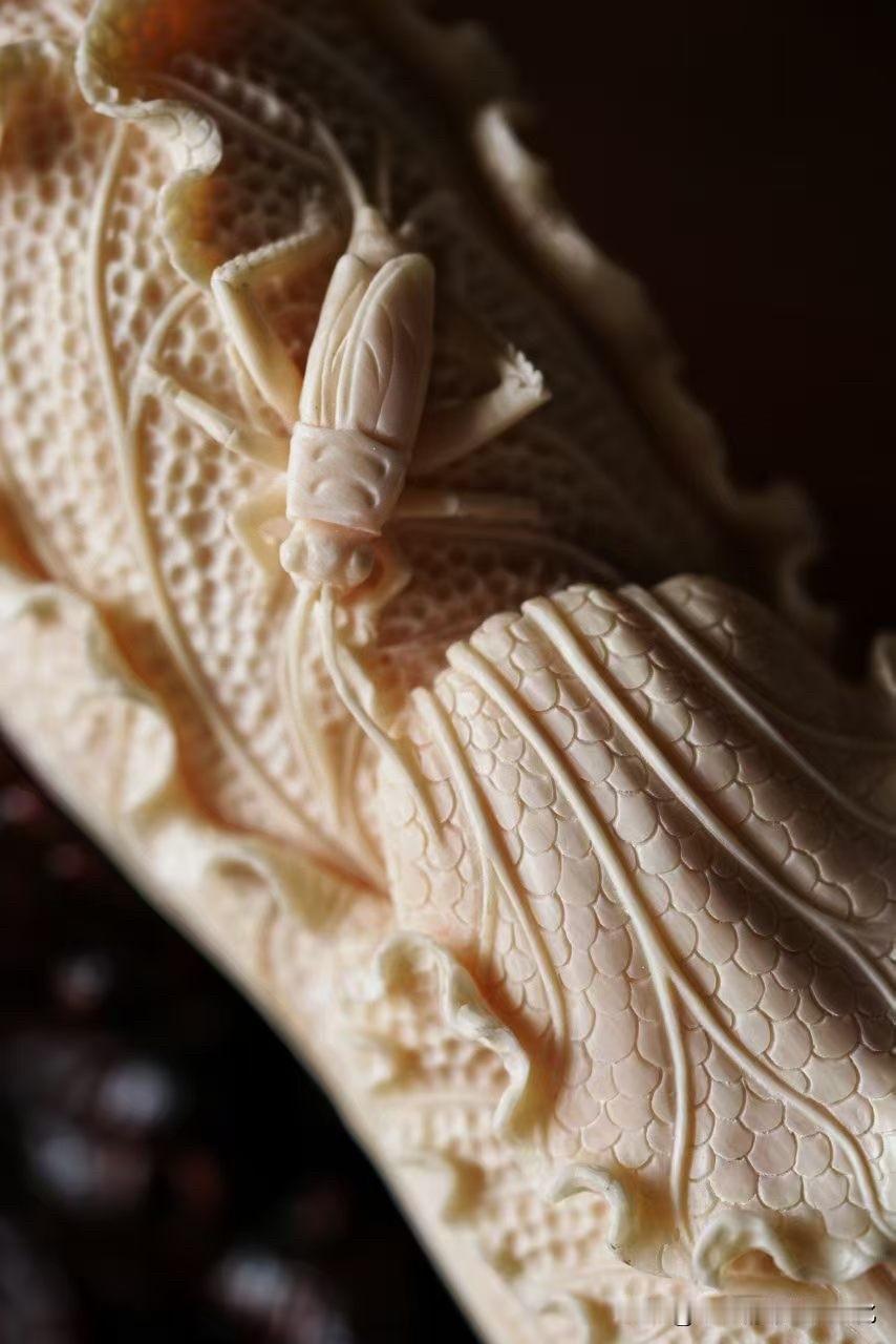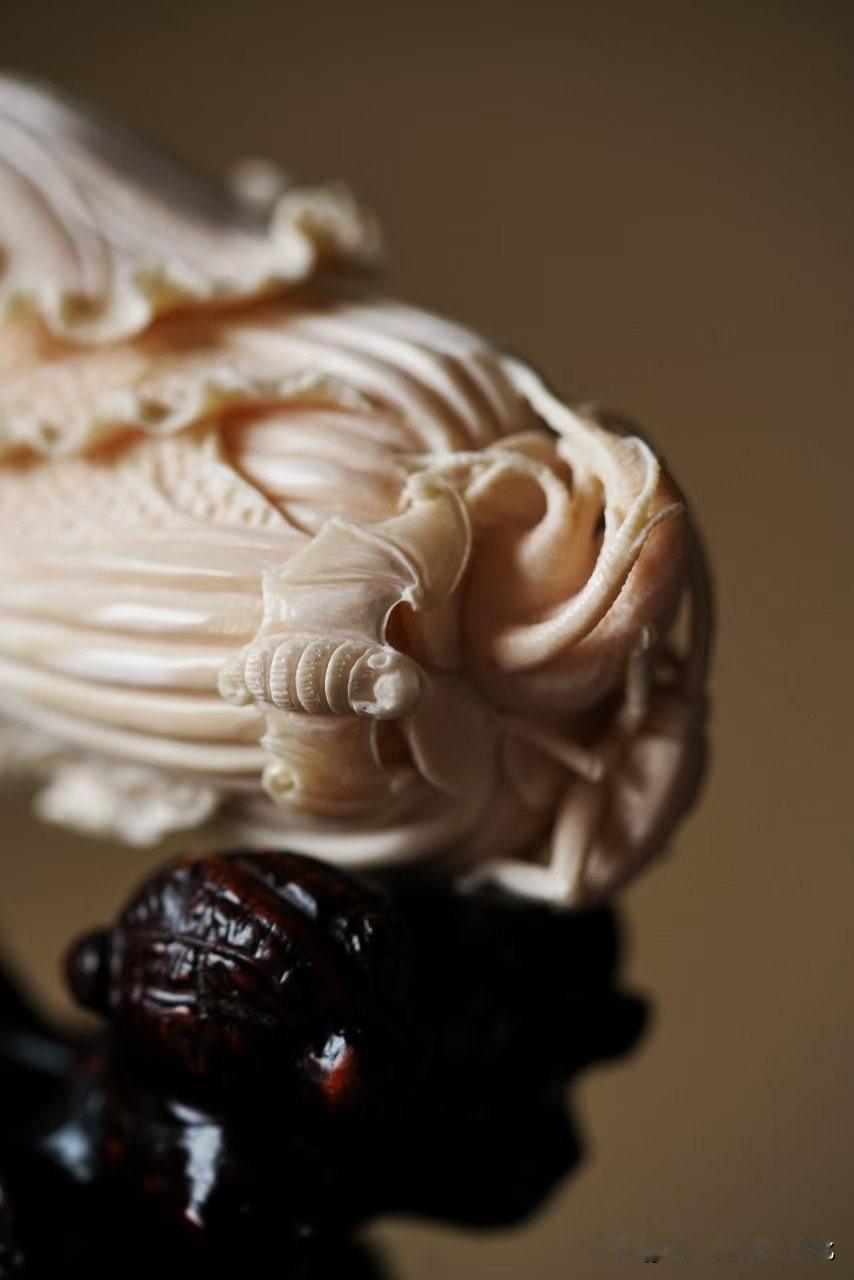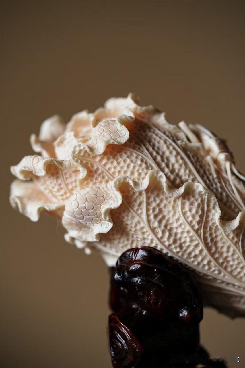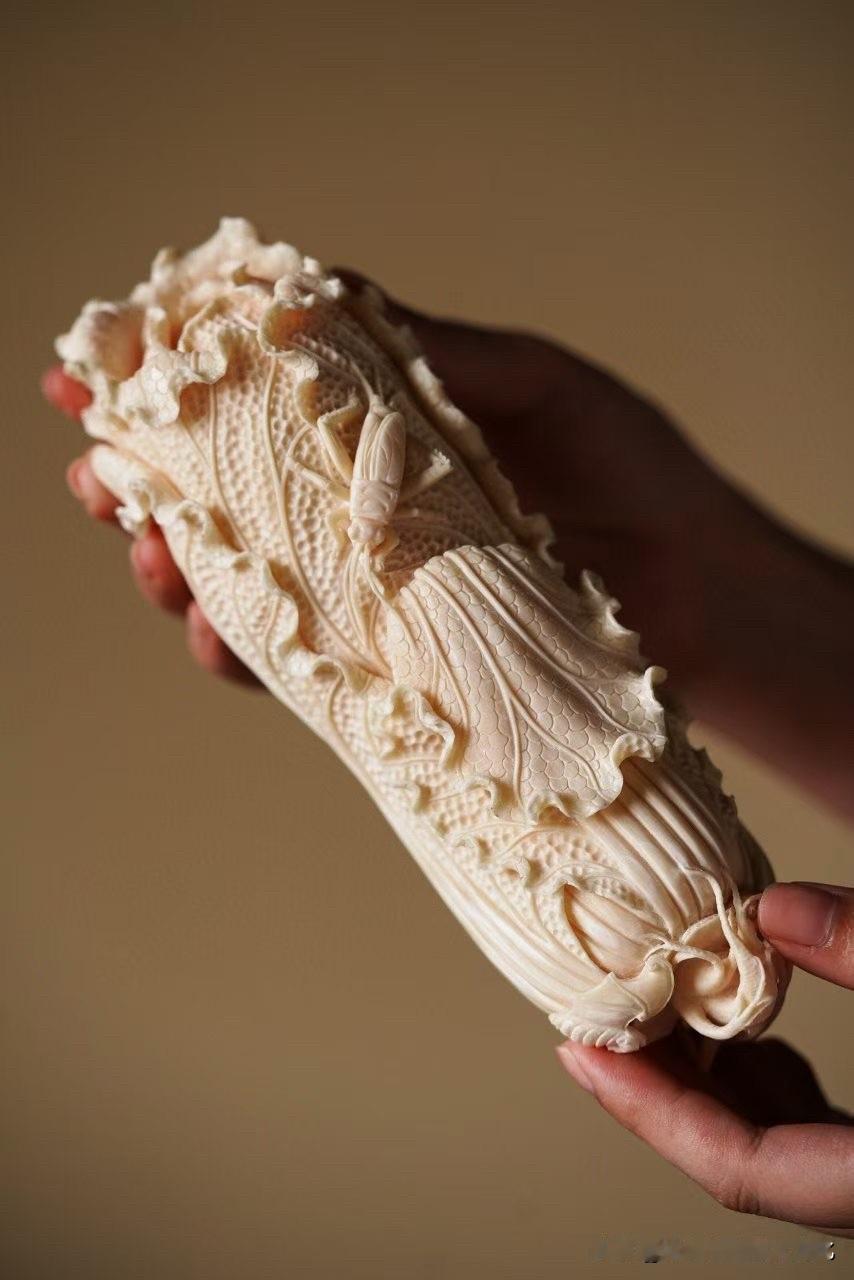 猛犸的质地温润如脂,光在表面轻轻游走,细看之下,层层过渡,不生硬也不死白。刀落其上,白菜叶片一层一层翻起,起伏如云,薄处见透,厚处见骨。