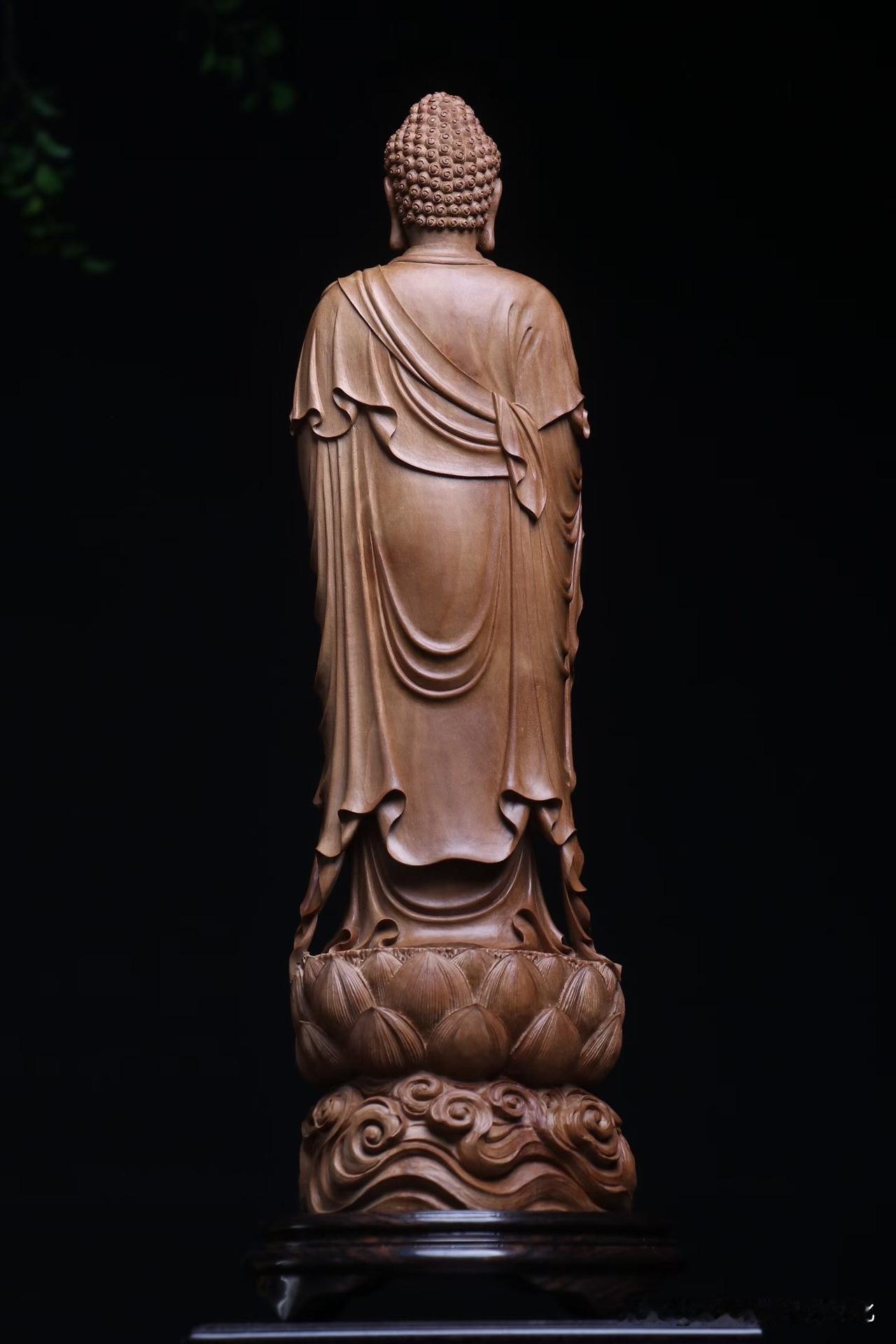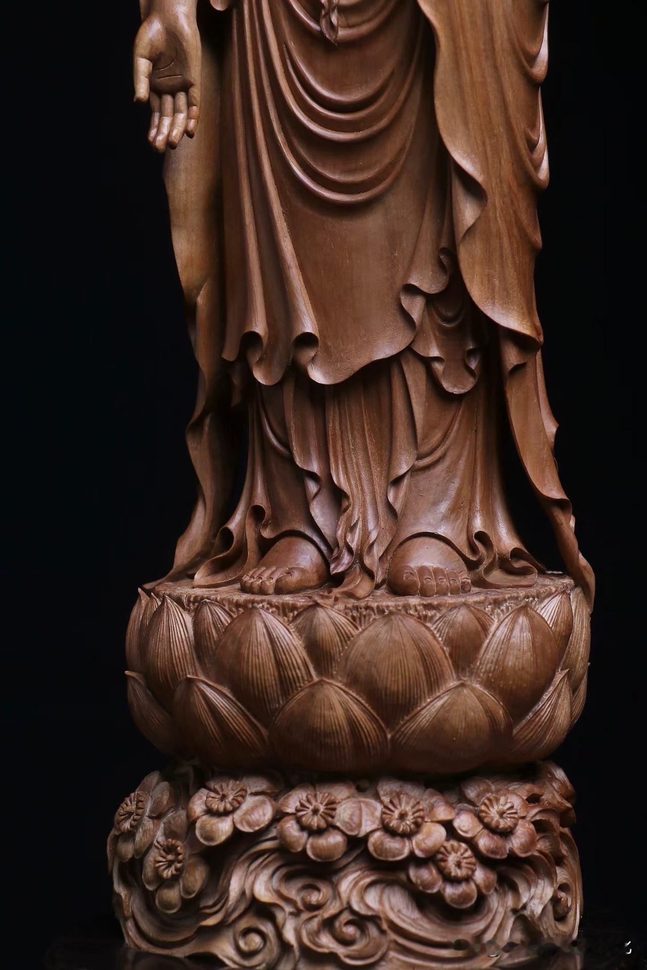 衣纹层层,如水行风。刀不张扬,却有分寸,收放之间,让整尊像“立”得稳,也“活”得开。