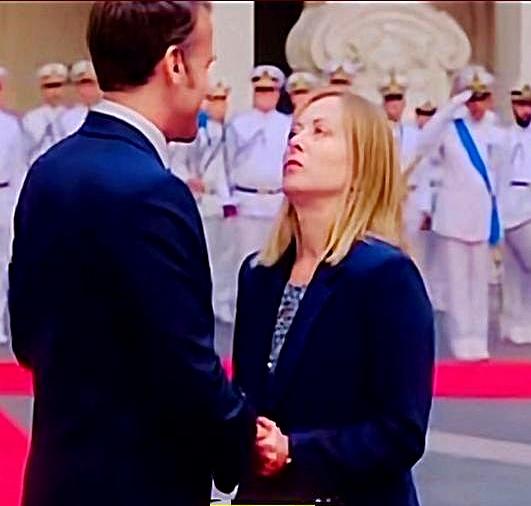 意大利总理梅洛尼最近可让网友乐坏了,跟法国总统马克龙开会时,那表情就跟咱过年被迫听亲戚唠叨似的,眉头皱得能夹蚊子,眼神里的不耐烦都快溢出屏幕了!
